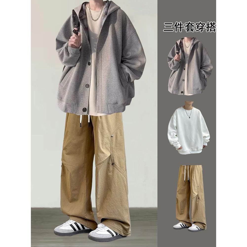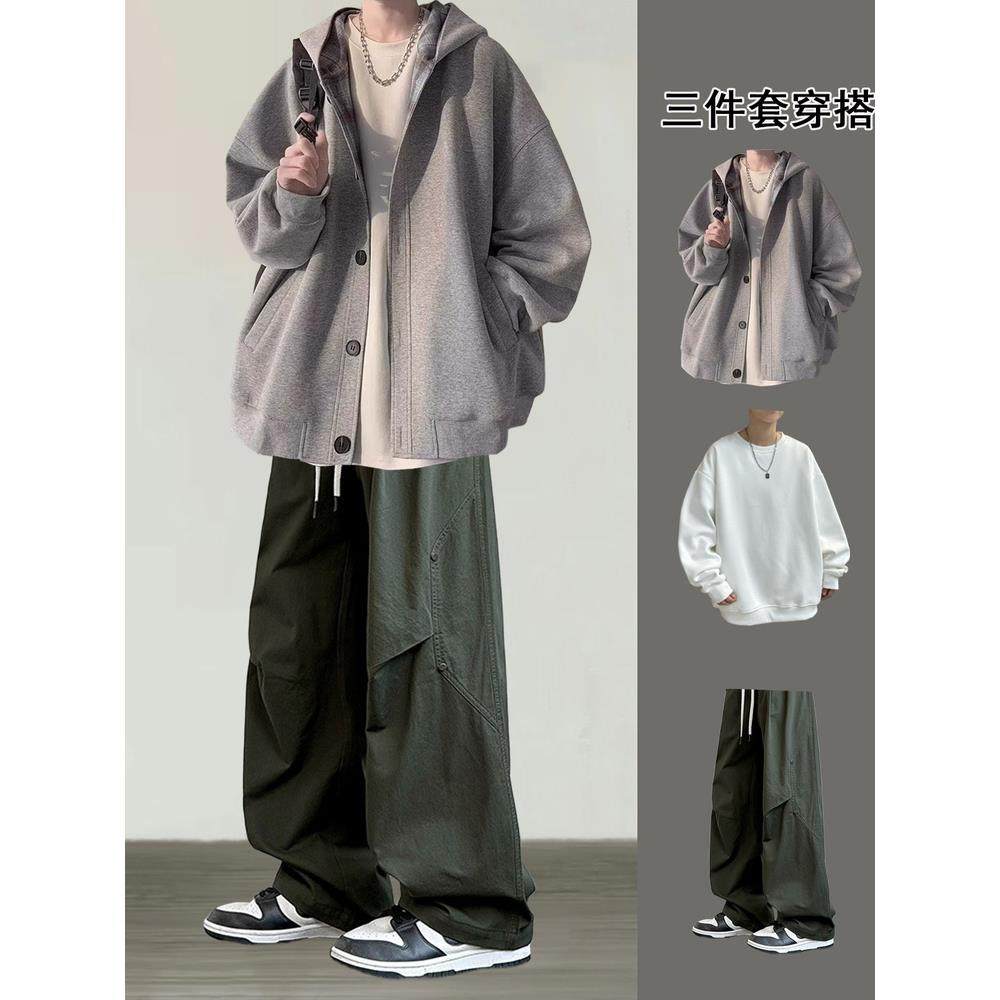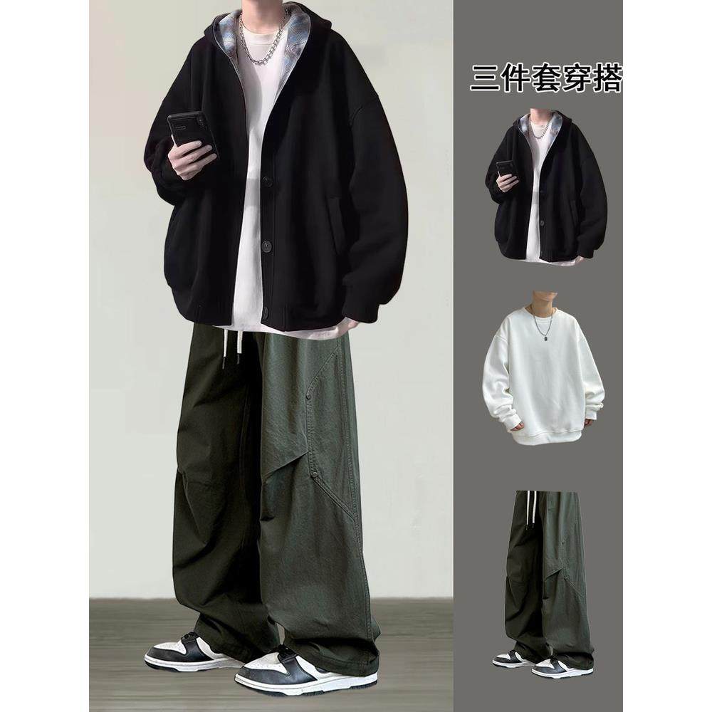秋季连帽卫衣生男潮流青少年搭配帅气学生衣服时髦套装男装三件套