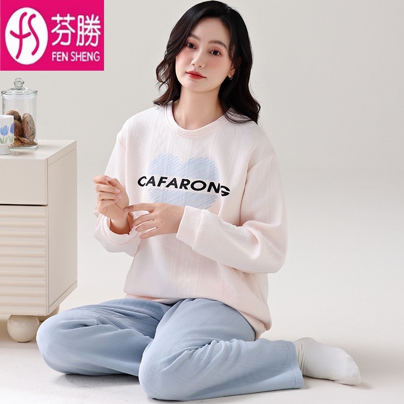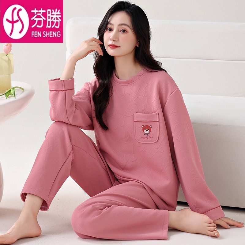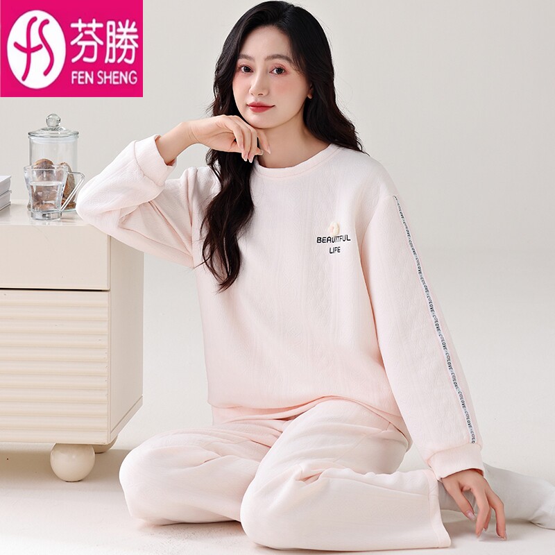 睡衣女款秋冬季纯棉大码夹层空气棉2026新款套头休闲家居服可外穿
