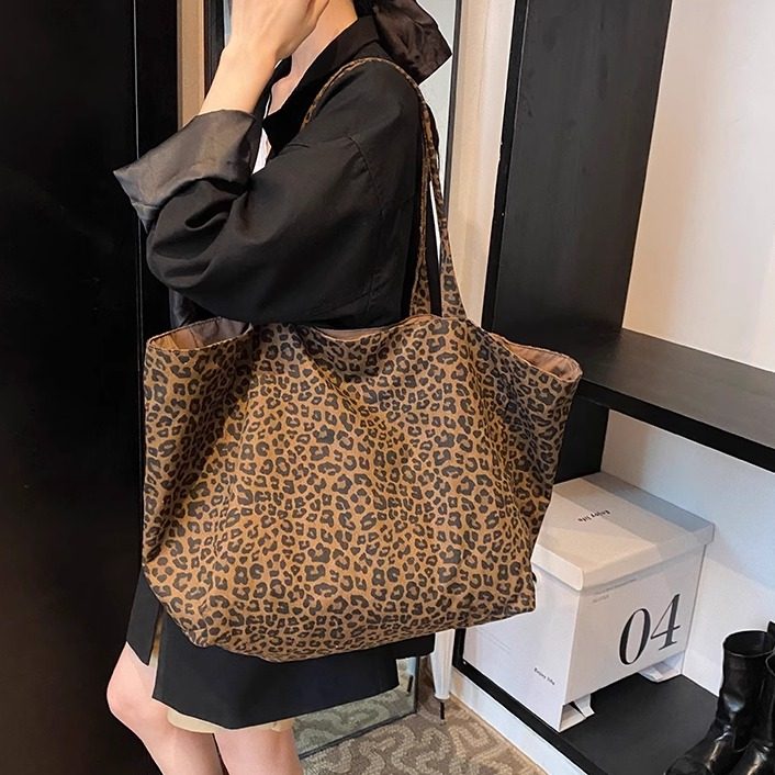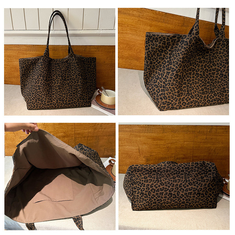 大容量帆布包女款2025新款秋冬双面背豹纹手提袋上班通勤单肩包