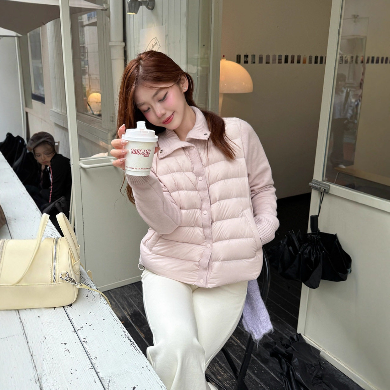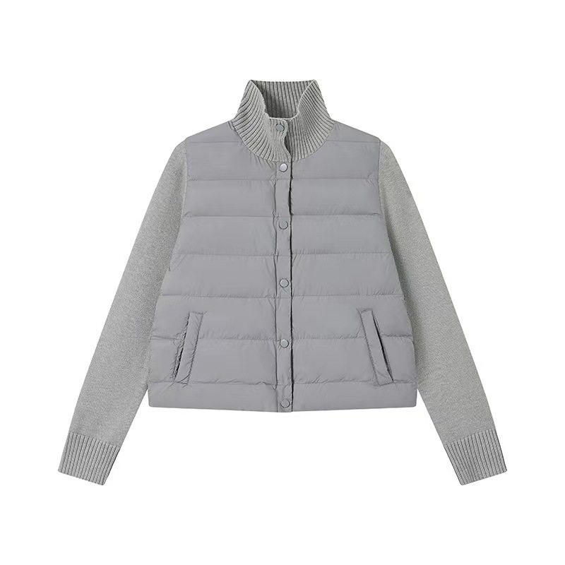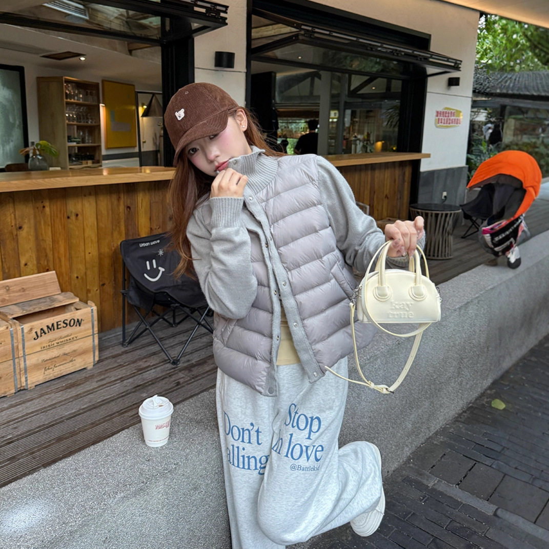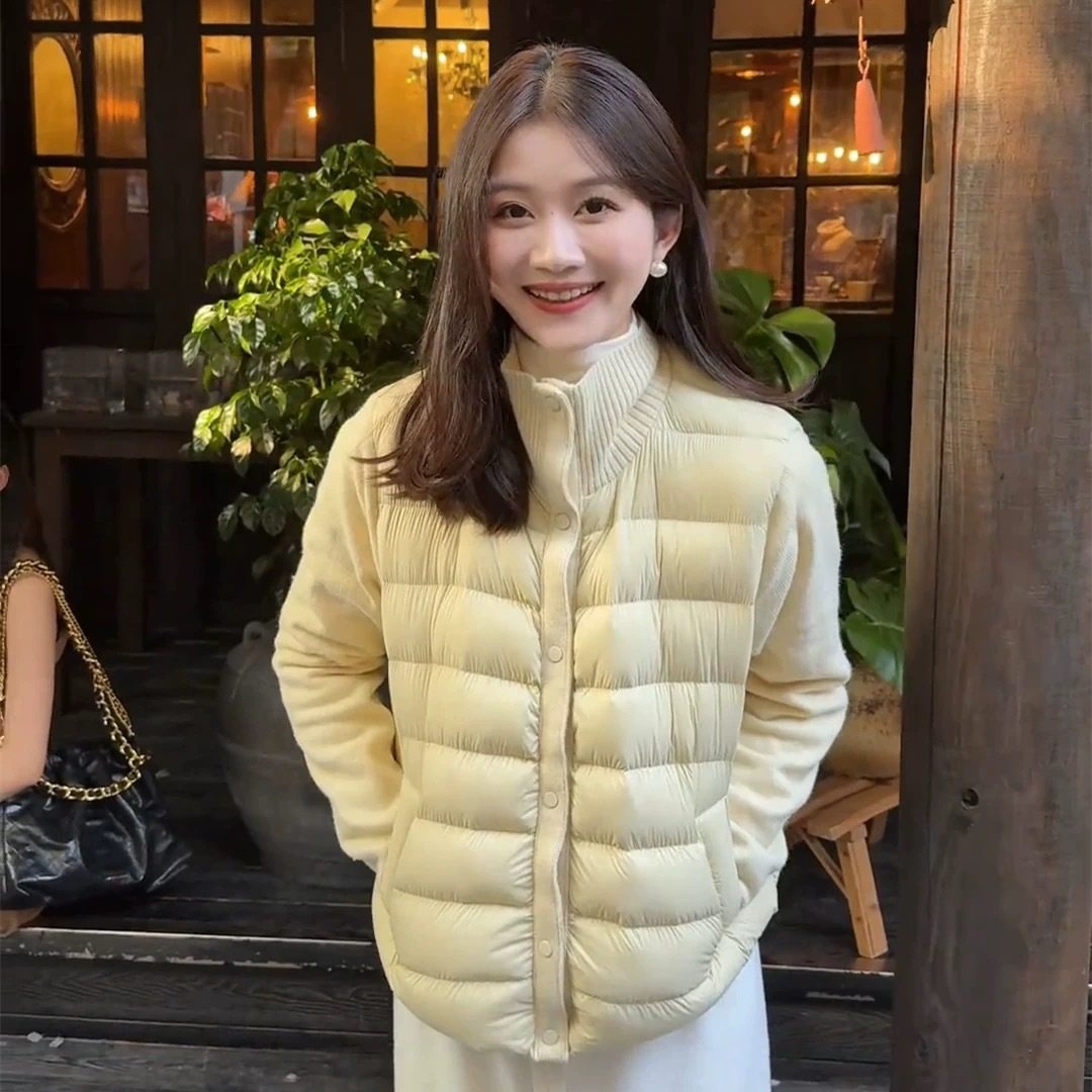 韩系轻薄羽绒服女款冬季新款立领毛衣拼接轻便排骨白鸭绒内胆外套