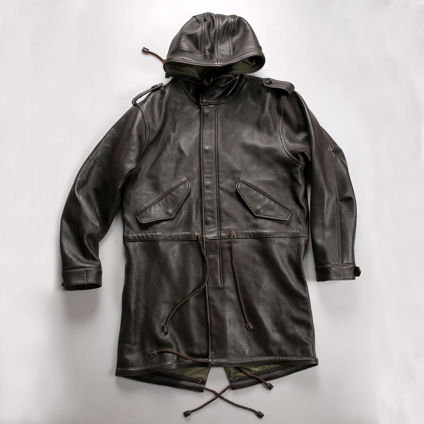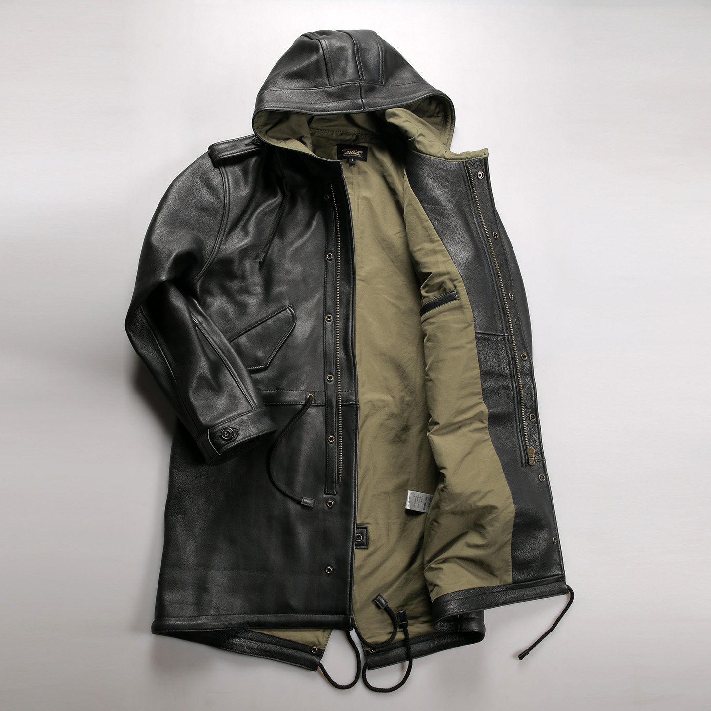 美式M51皮衣鱼尾风衣连帽中长款绵羊皮外套宽松休闲军旅真皮大衣