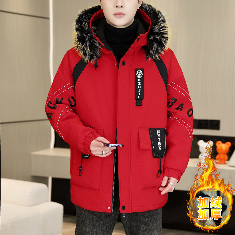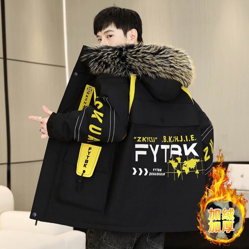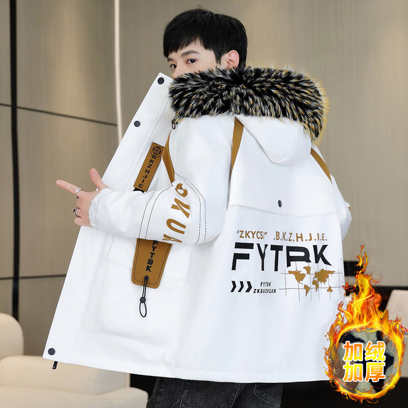 秋冬款加绒外套男孩初高中学生加厚派克棉服青少年大童帅气羽绒服