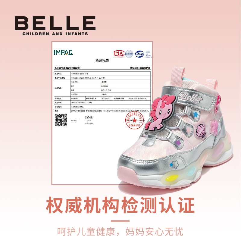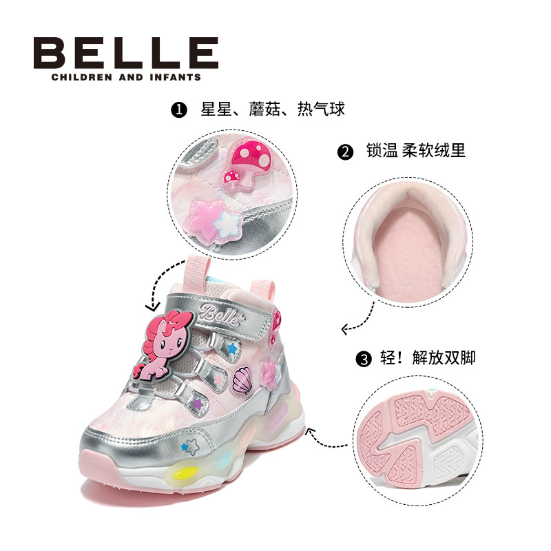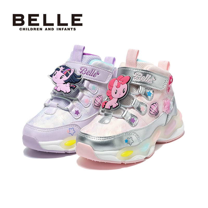 百丽童鞋小马宝莉联名女童棉鞋2026冬季新款加绒运动鞋碧琪紫悦