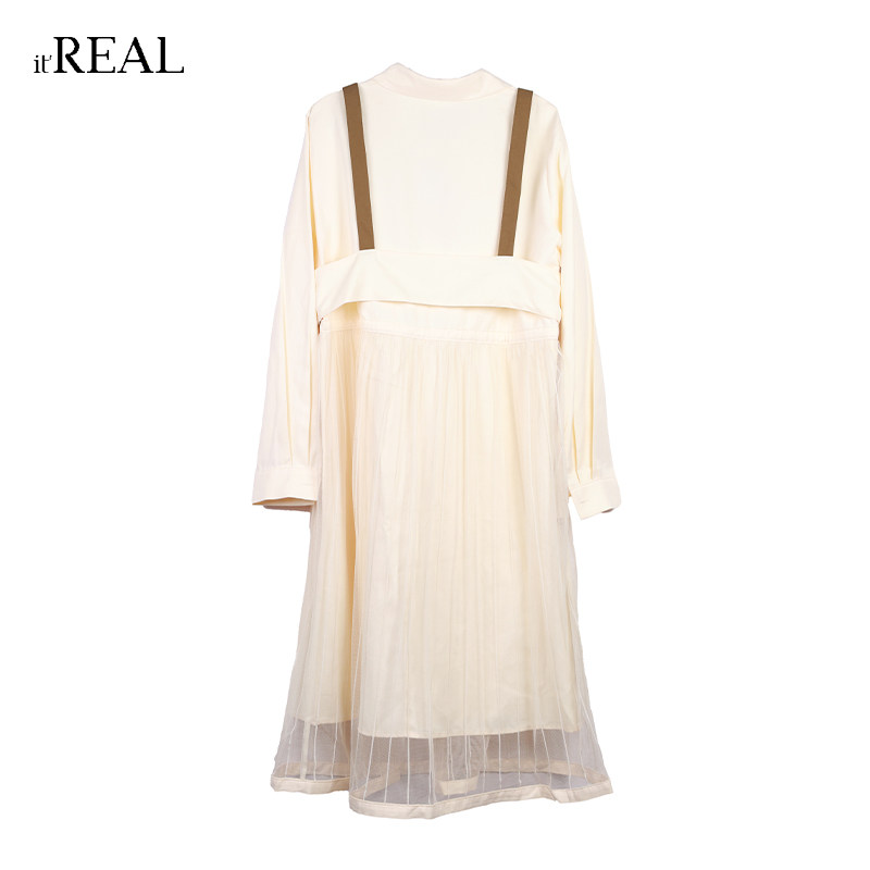 itreal瑞尔春季季新款女士文艺复古休闲裙子长袖杏色连衣裙