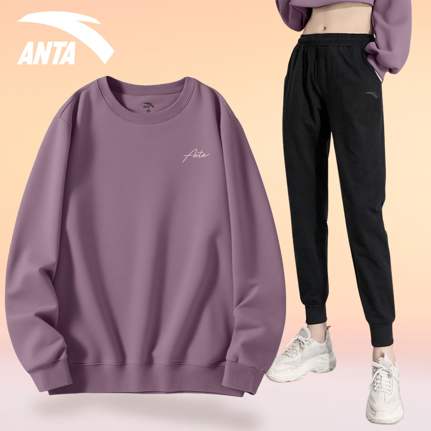 安踏运动套装女款2026春秋季新款宽松透气休闲跑步卫衣长裤两件套
