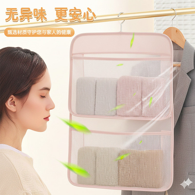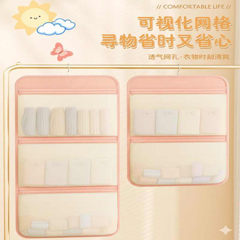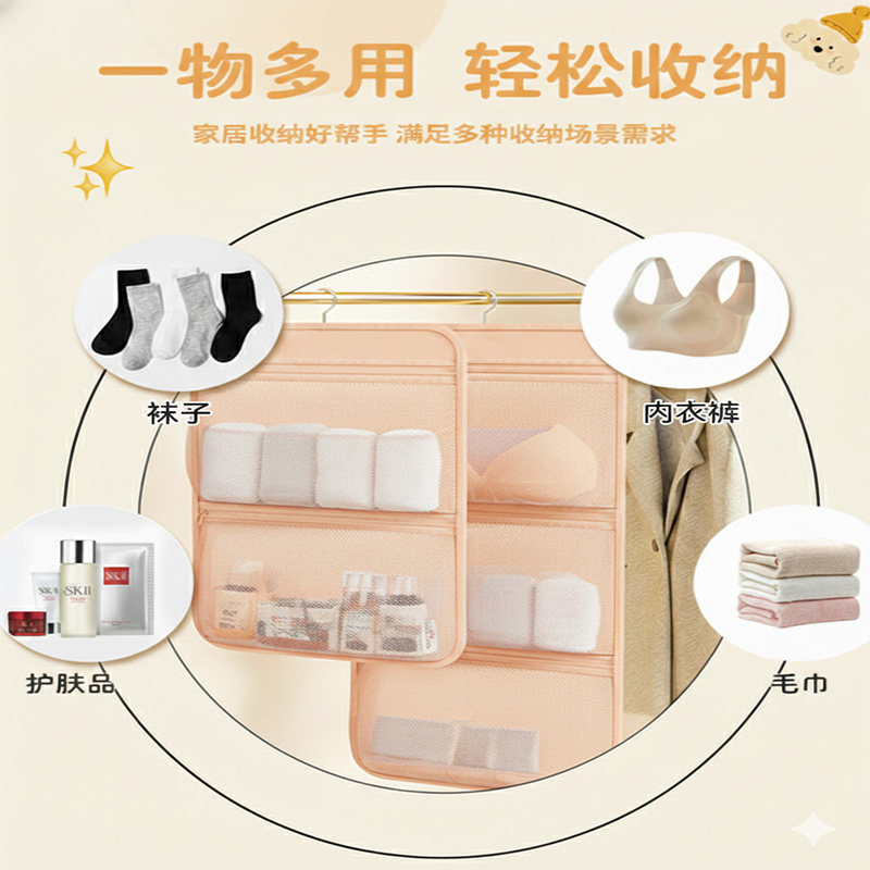 内衣收纳盒悬挂式网兜宿舍衣柜整理神器装袜子内裤收纳挂袋三合一