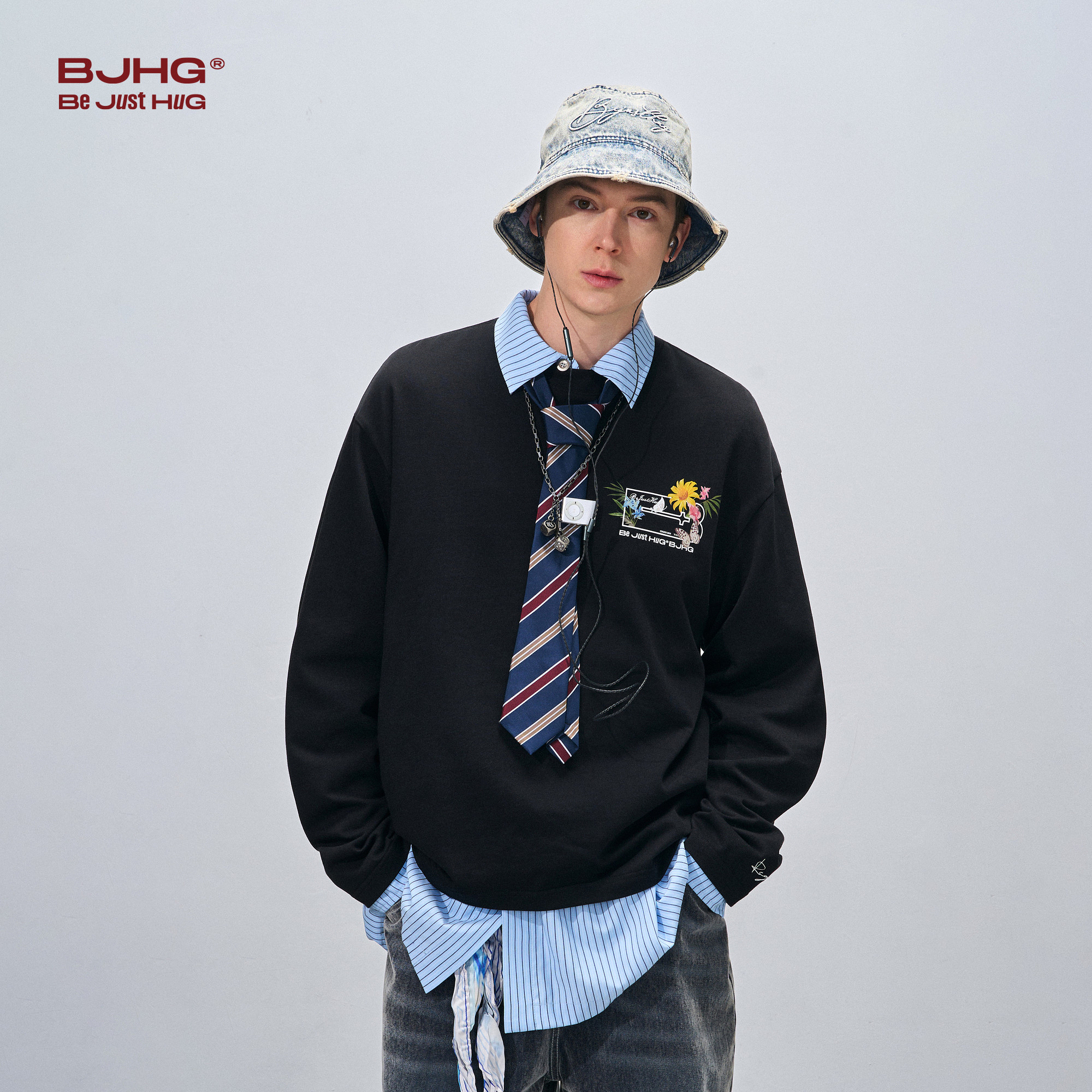 BJHG不计后果花卉长袖t恤男女款春季新款美式潮牌宽松情侣装卫衣
