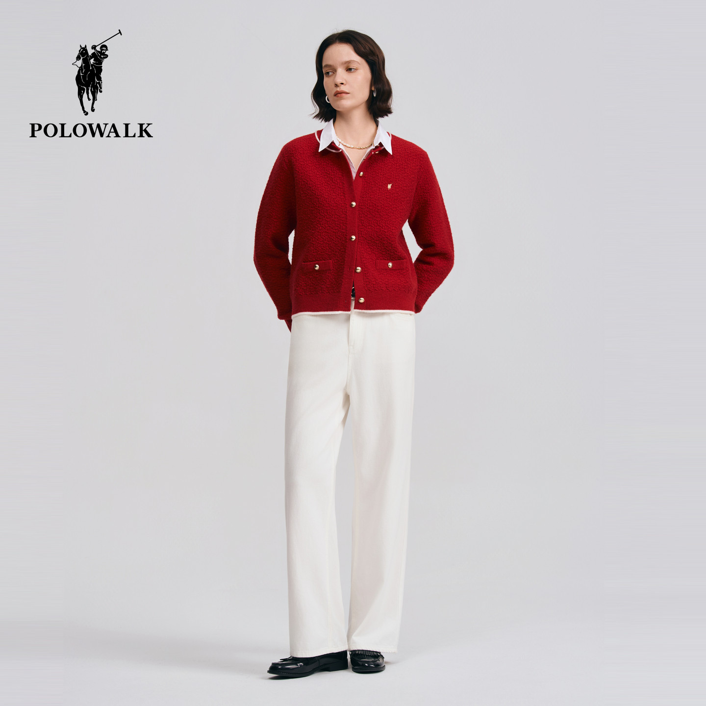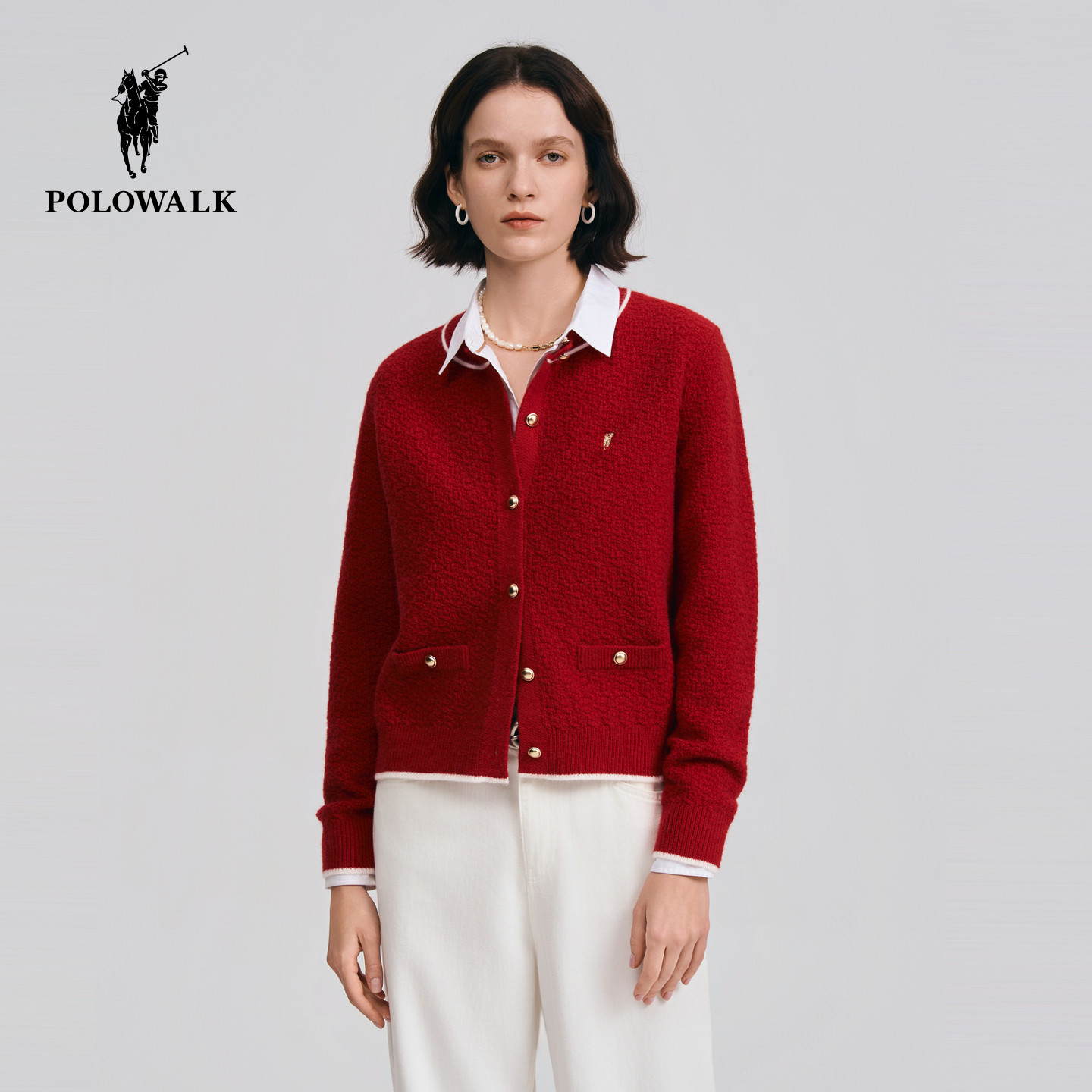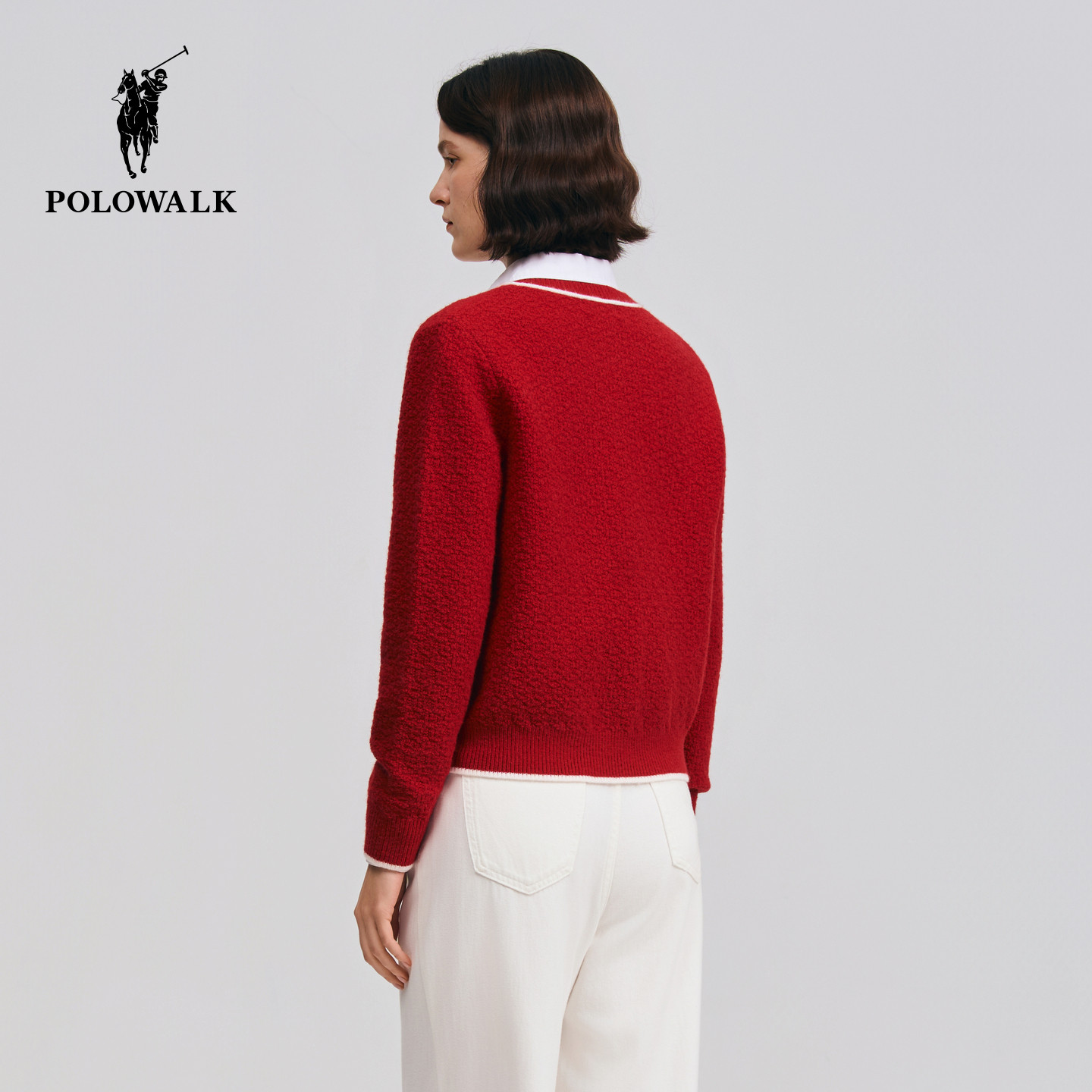 POLOWALK女装针织衫2026春季新款女士圆领针织衫开衫上衣红色毛衣