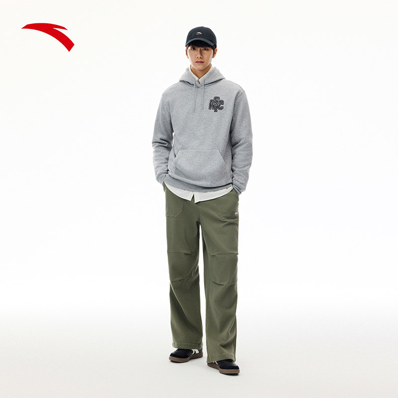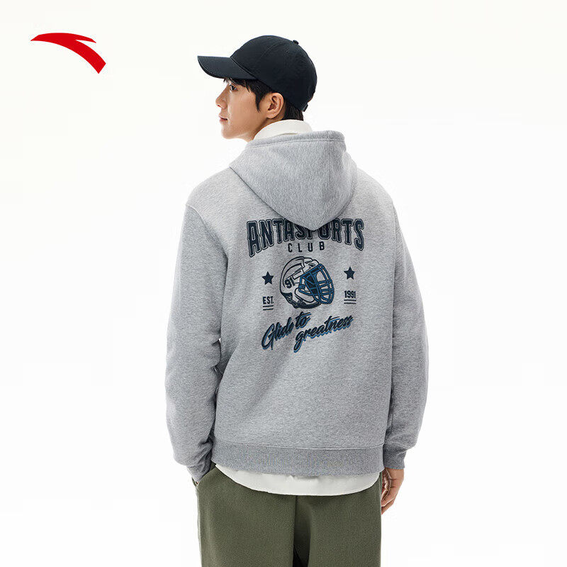 安踏【王一博同款】加绒卫衣男冬季美式复古宽松加厚长袖运动上衣