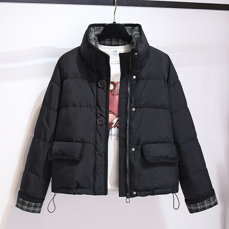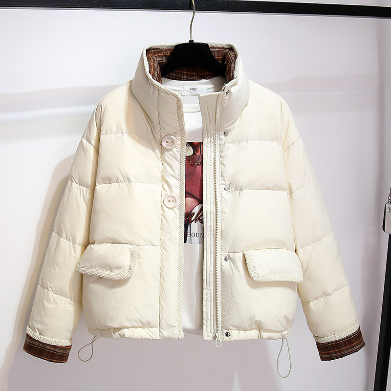 今年流行爆款南瓜橘色拼接立领羽绒服女士2025冬季新款面包服外套