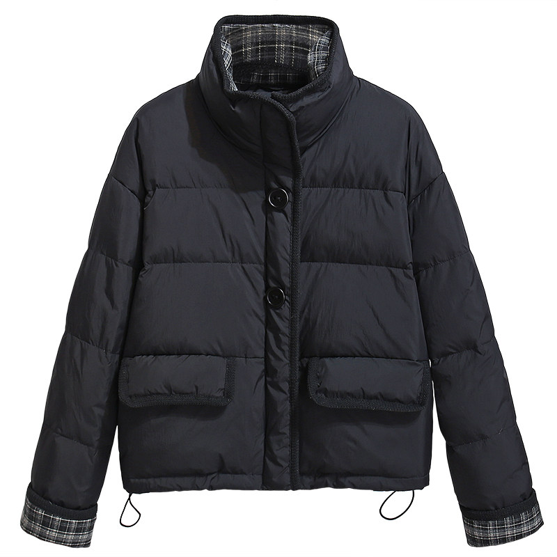 311线报网描述:今年流行爆款南瓜橘色拼接立领羽绒服面包服