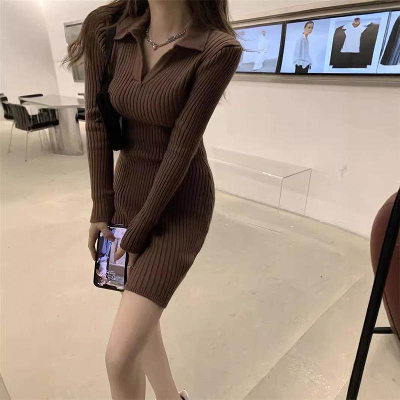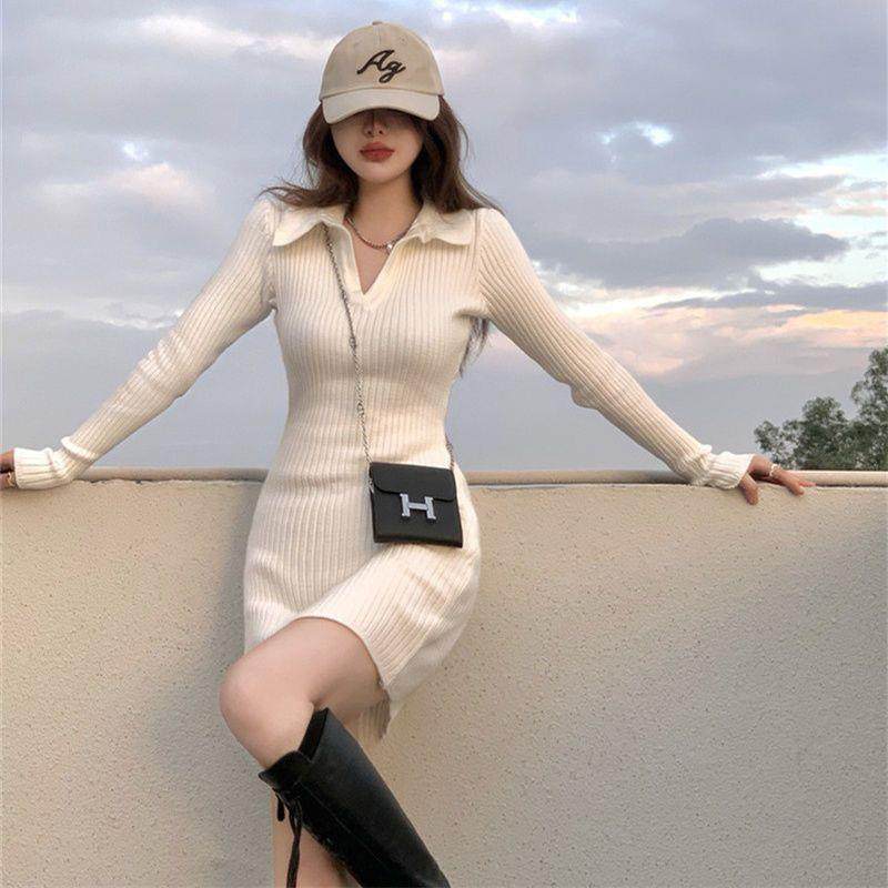 polo领长袖连衣裙女秋冬季新款配大衣内搭辣妹修身打底包臀短裙女