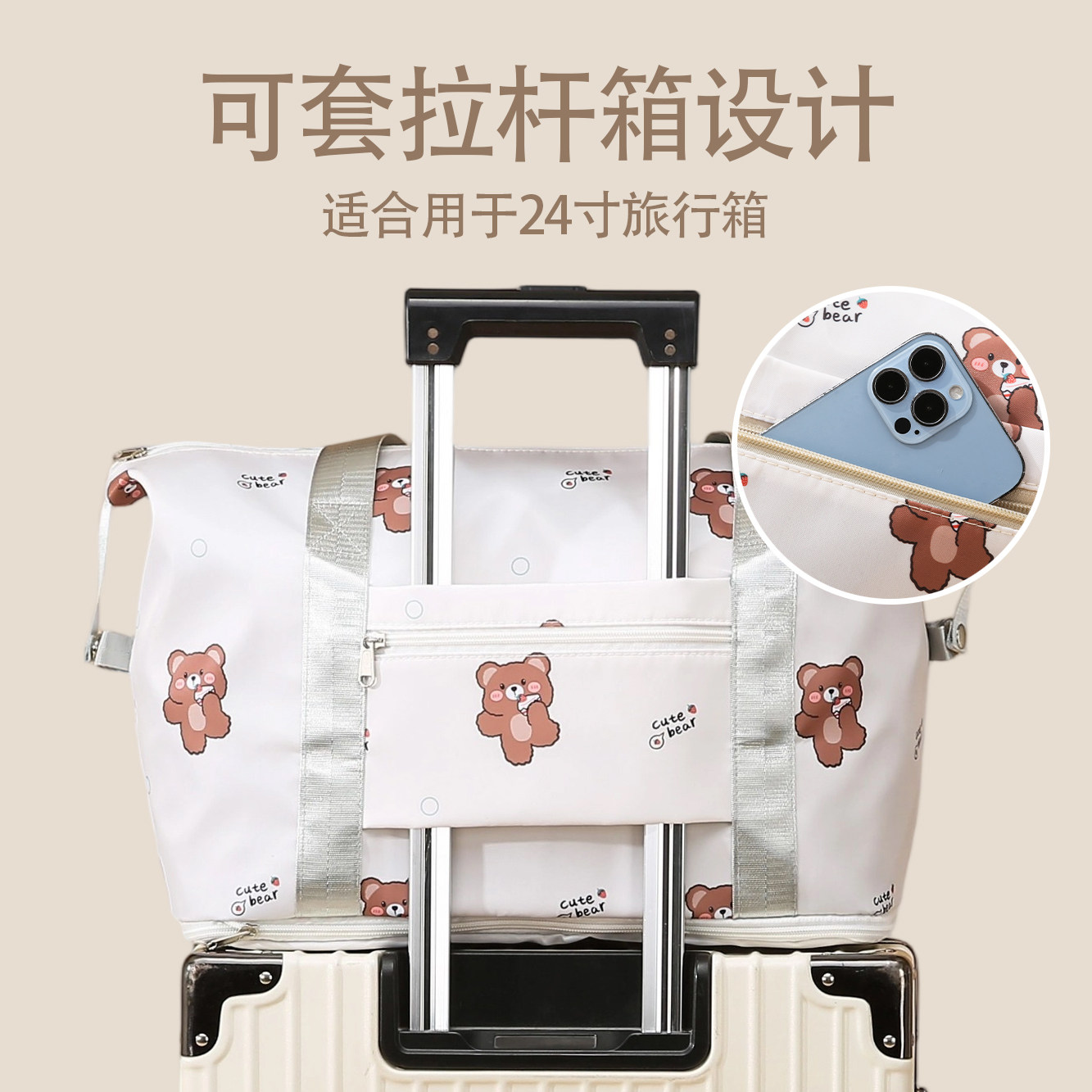 短途旅行包学生拉杆登机包待产收纳袋可爱轻便携出差大容量行李包