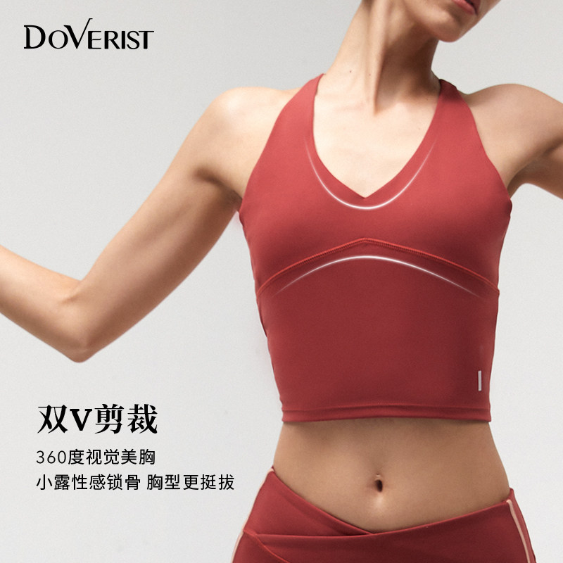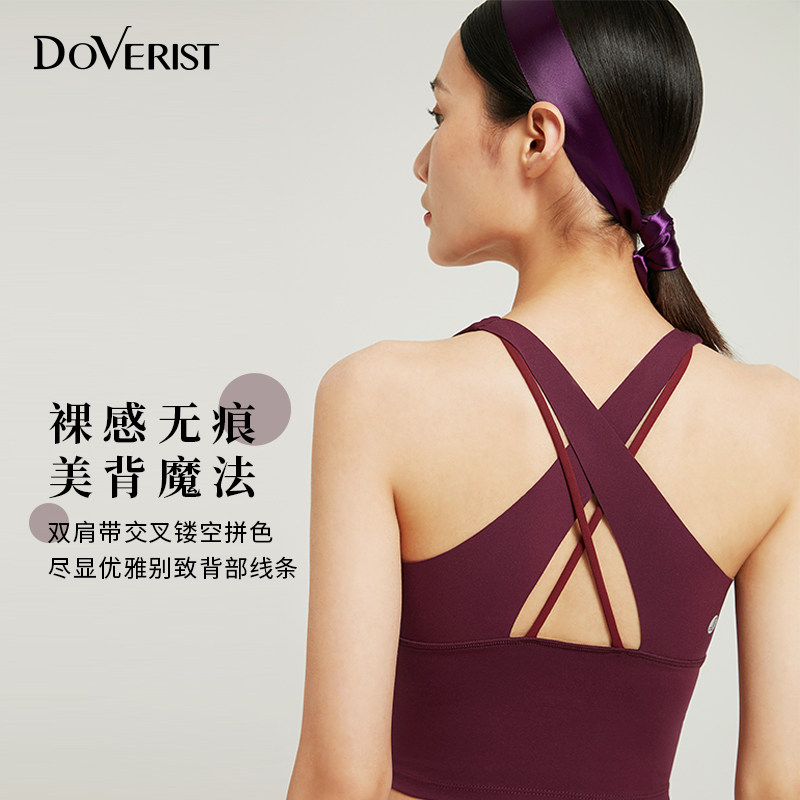 DOVERIST运动内衣女一体式瑜伽背心带胸垫外穿跑步防震健身美背