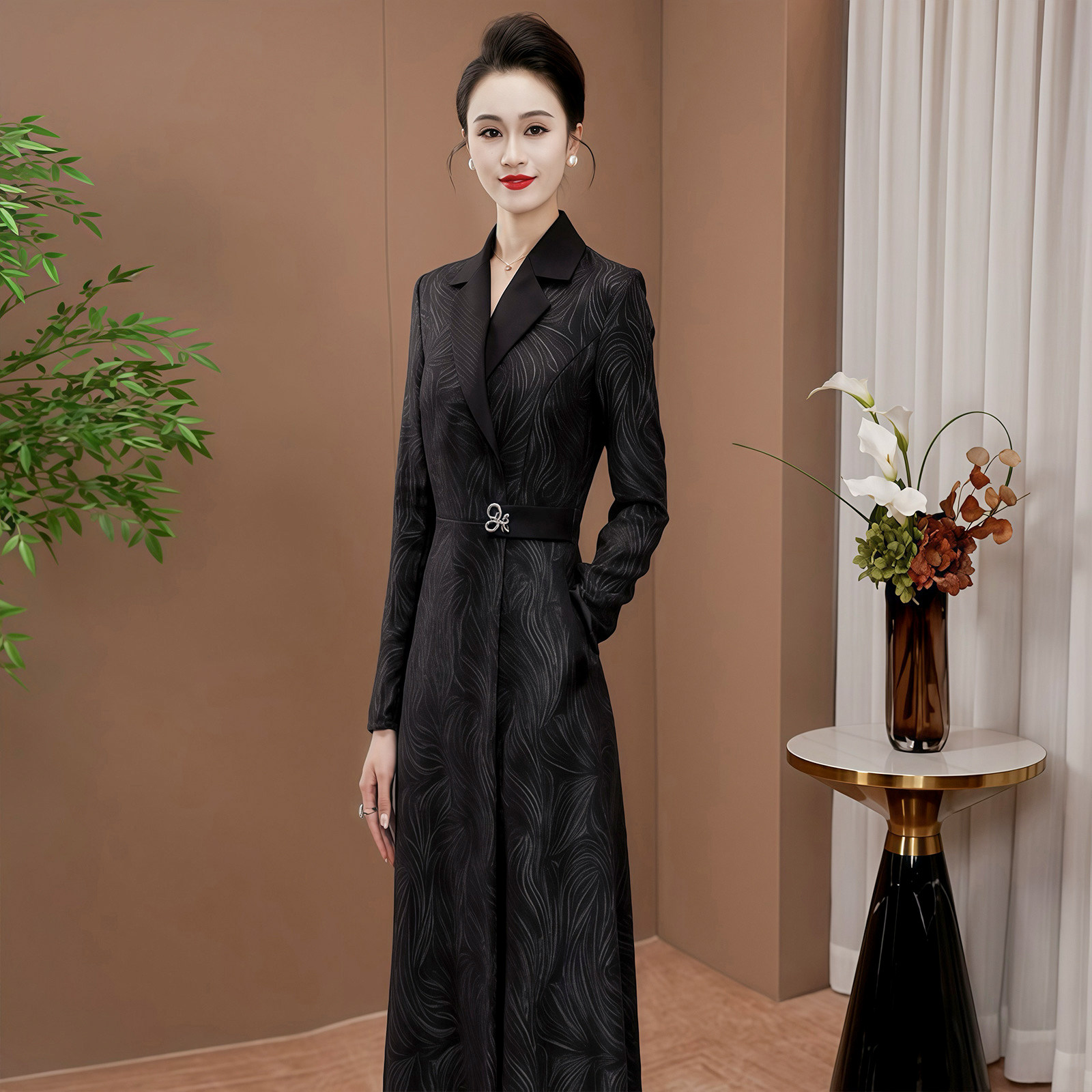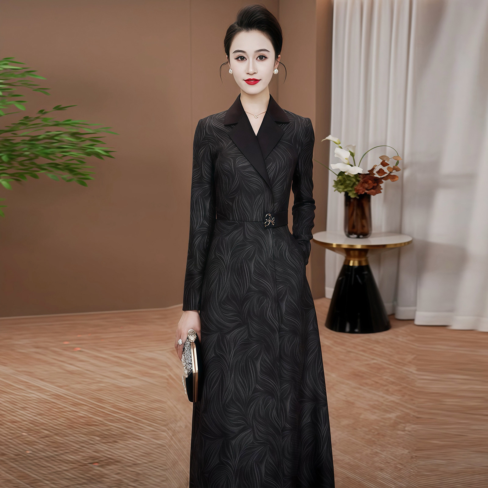 长袖连衣裙2026春季新款轻奢高级感穿搭气质显瘦时尚长款裙子0212