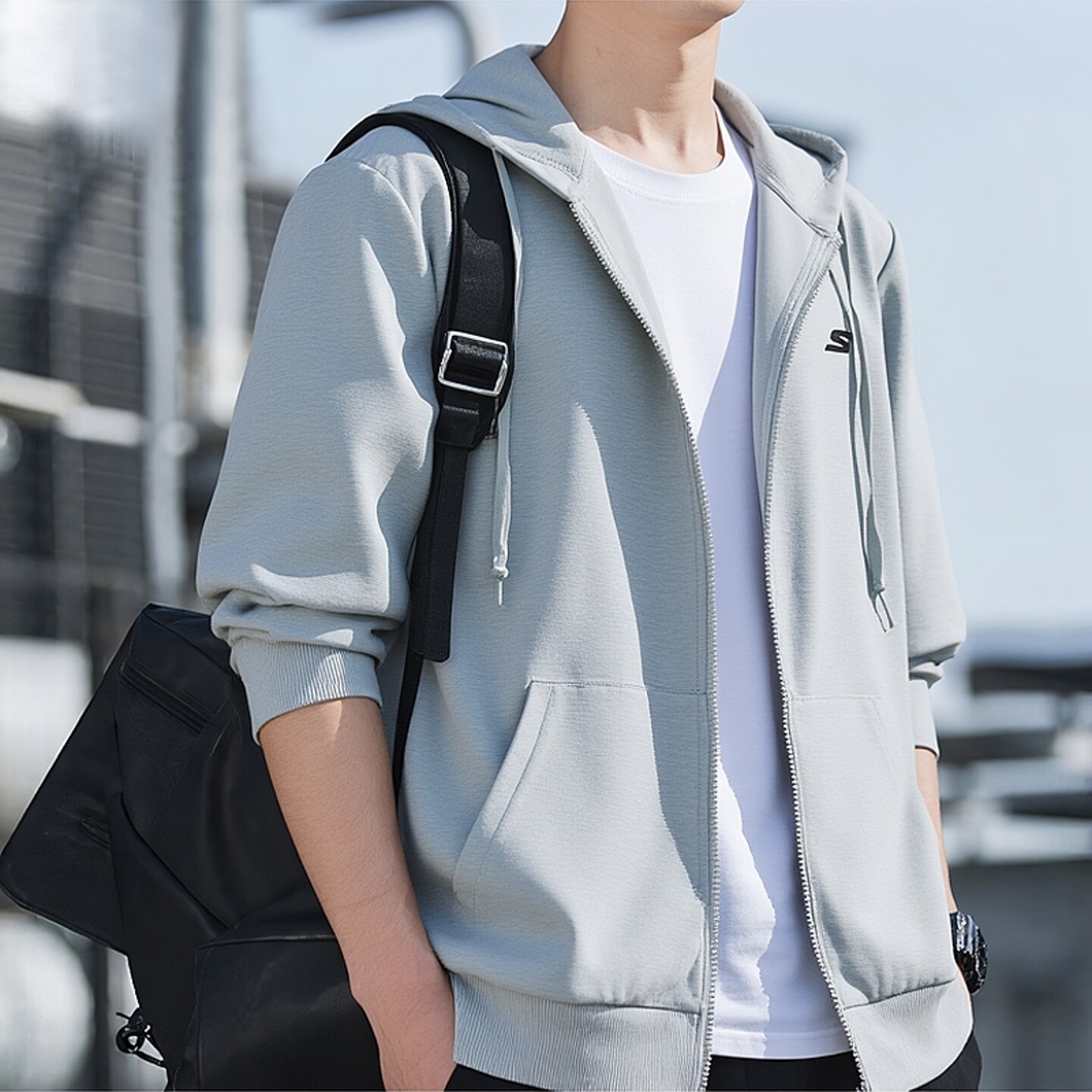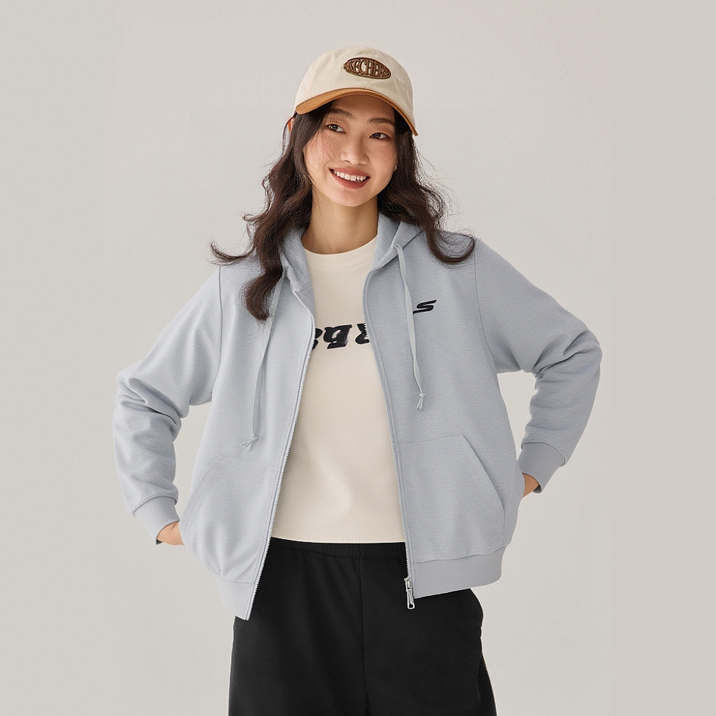 斯凯奇灰色外套女冬季2026新款初中生薄开衫女款大码连帽拉链卫衣