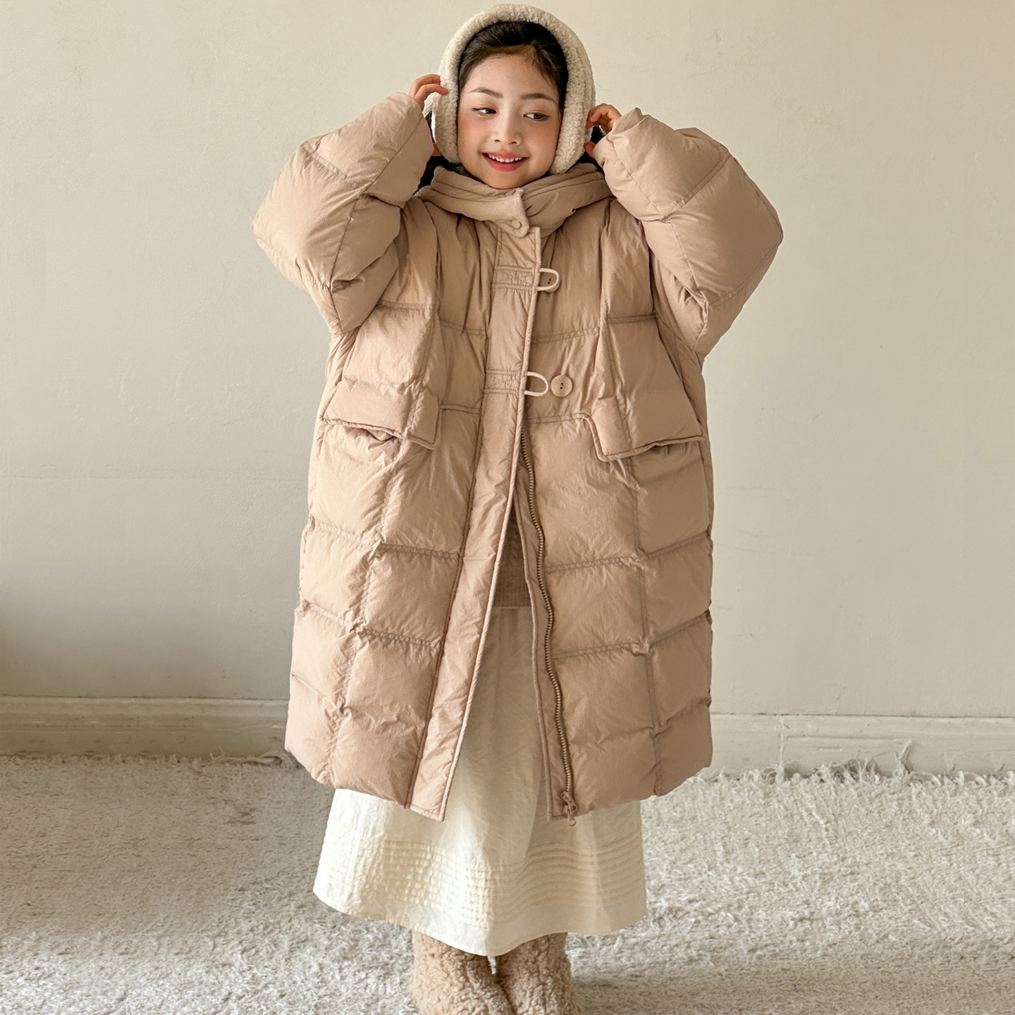 女童加厚羽绒服2026冬装新款女大童连帽冬季长款过膝儿童保暖外套