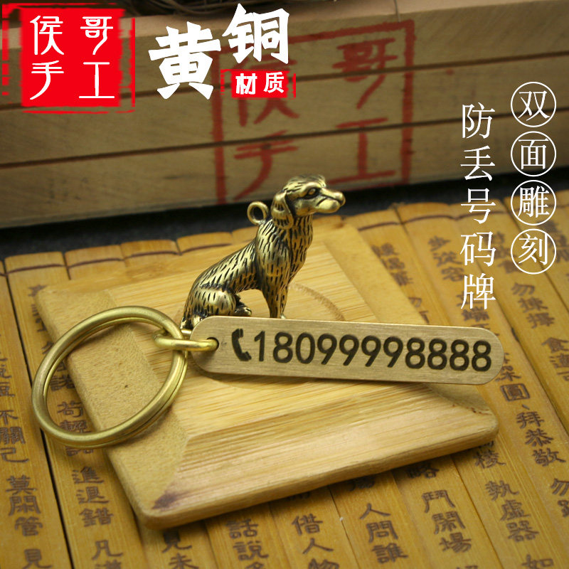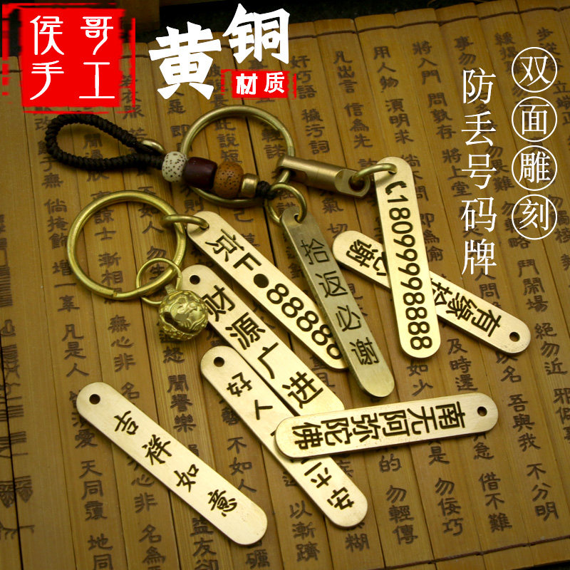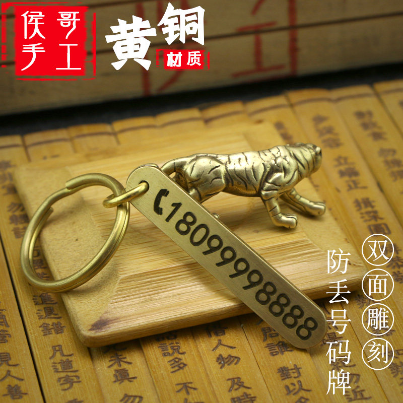 手工纯铜手机电话号码防丢牌黄铜刻字汽车钥匙扣简约挂件吊坠定制