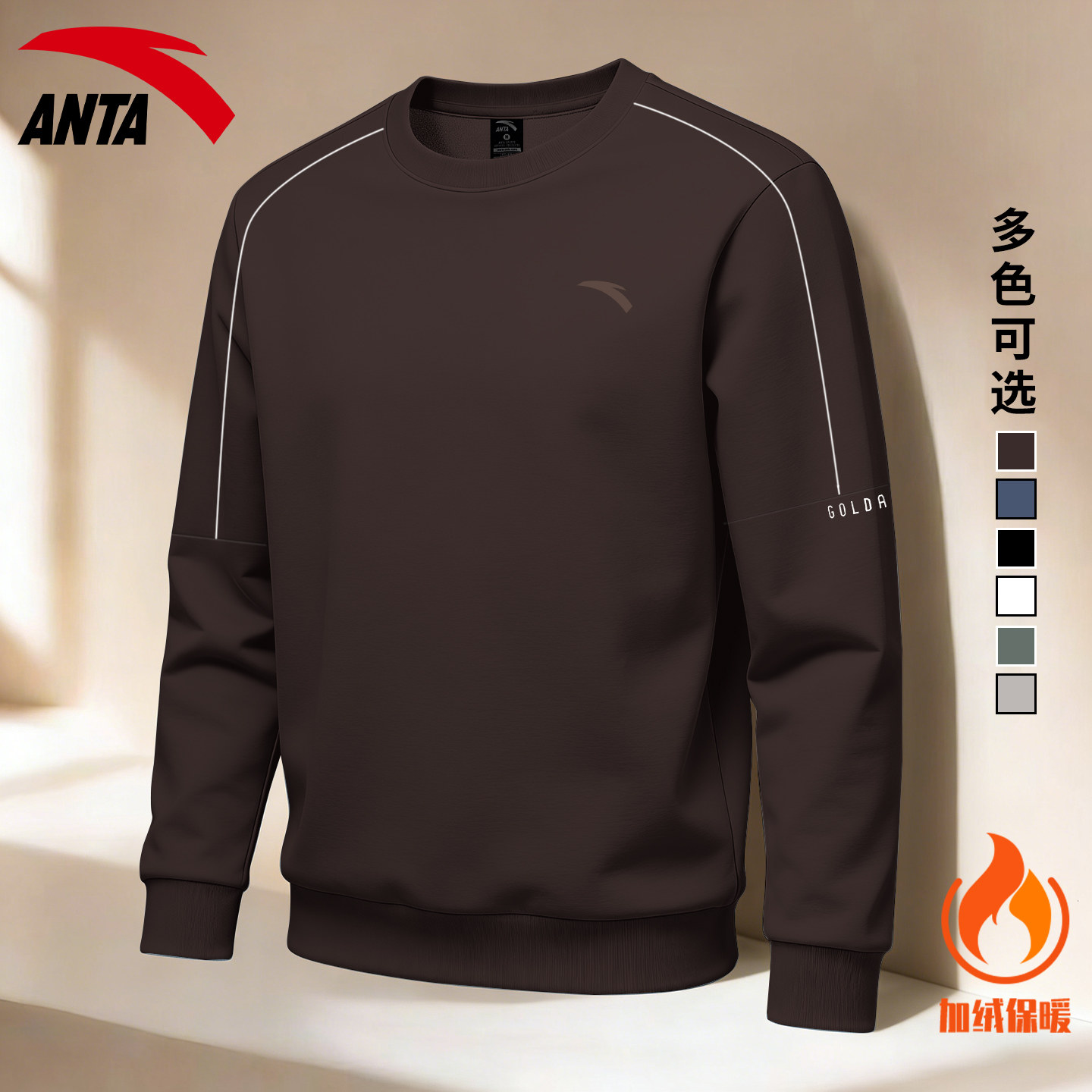 安踏圆领卫衣男款休闲大码宽松保暖2026春季新款时尚潮流运动上衣