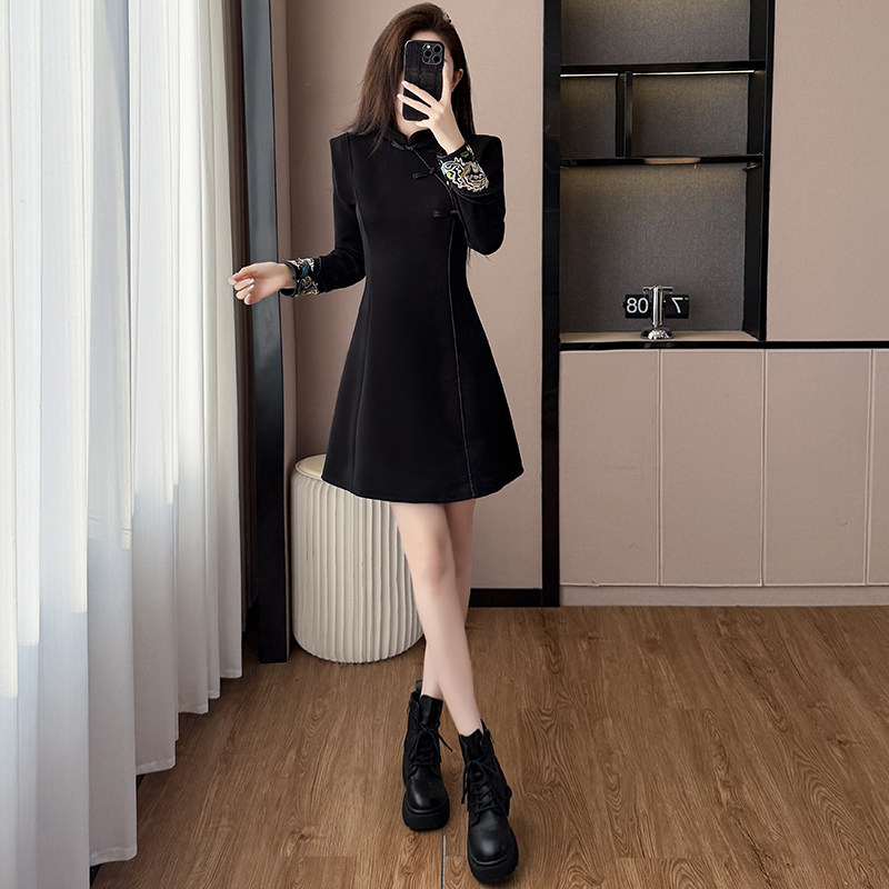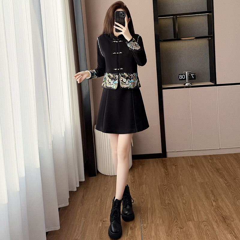 大码女装 实拍 2026春季新款长袖新中式国风复古刺绣两件套连衣裙