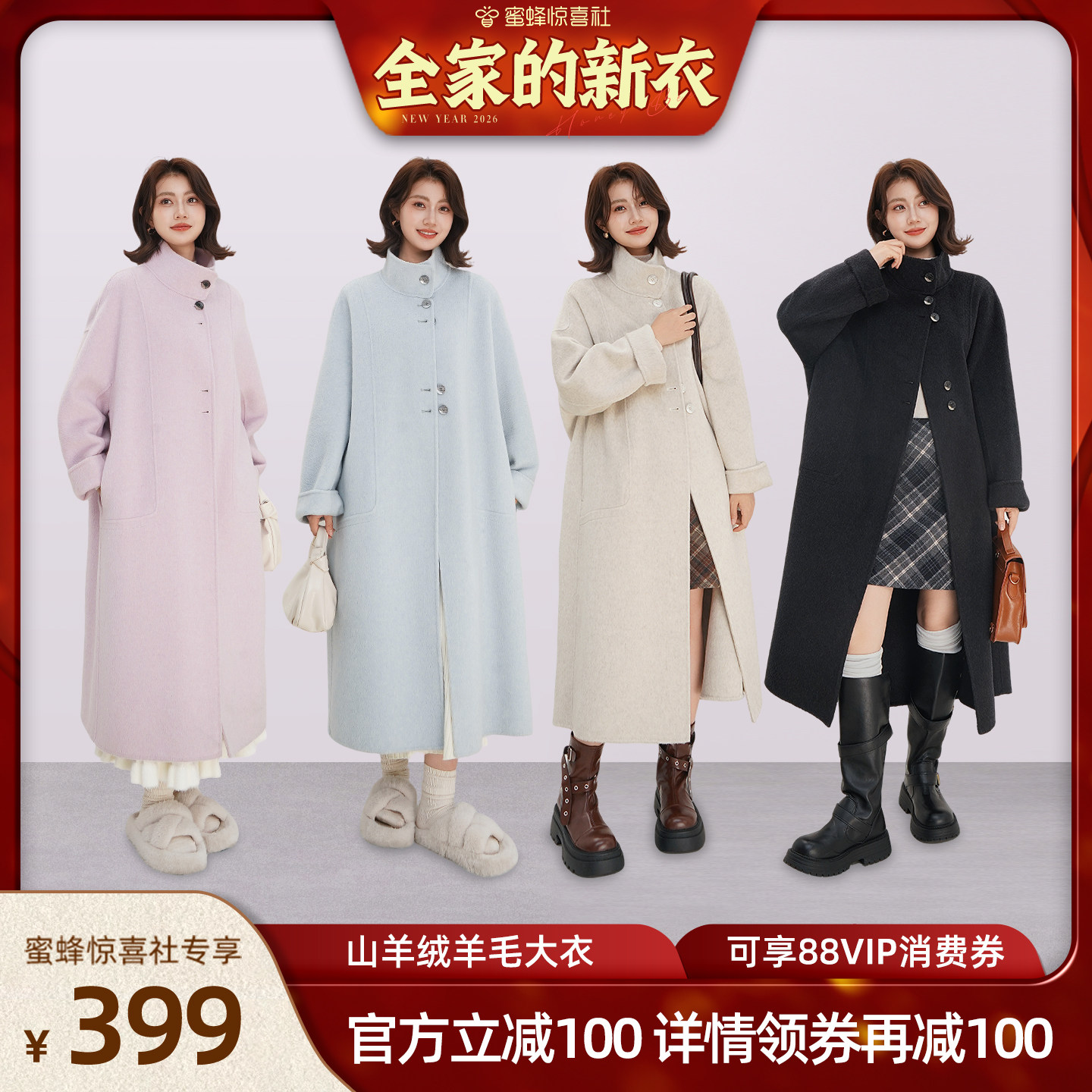 【全家的新衣】羊毛双面呢大衣女中长款秋冬小个子山羊绒呢子外套