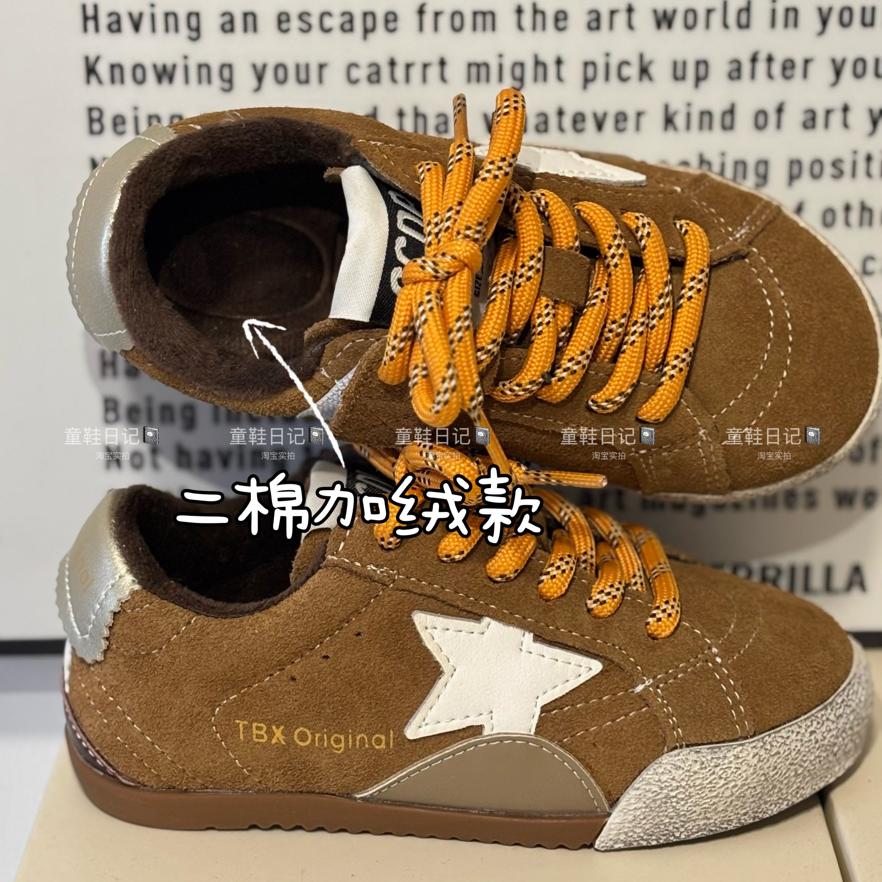 儿童运动鞋加绒童鞋2026秋冬新款女童德训鞋真皮男童板鞋星星鞋子