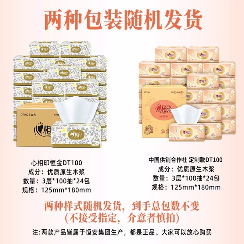 心相印抽纸100抽24包经典纸巾家用面巾纸餐巾纸抽手纸家庭卫生纸
