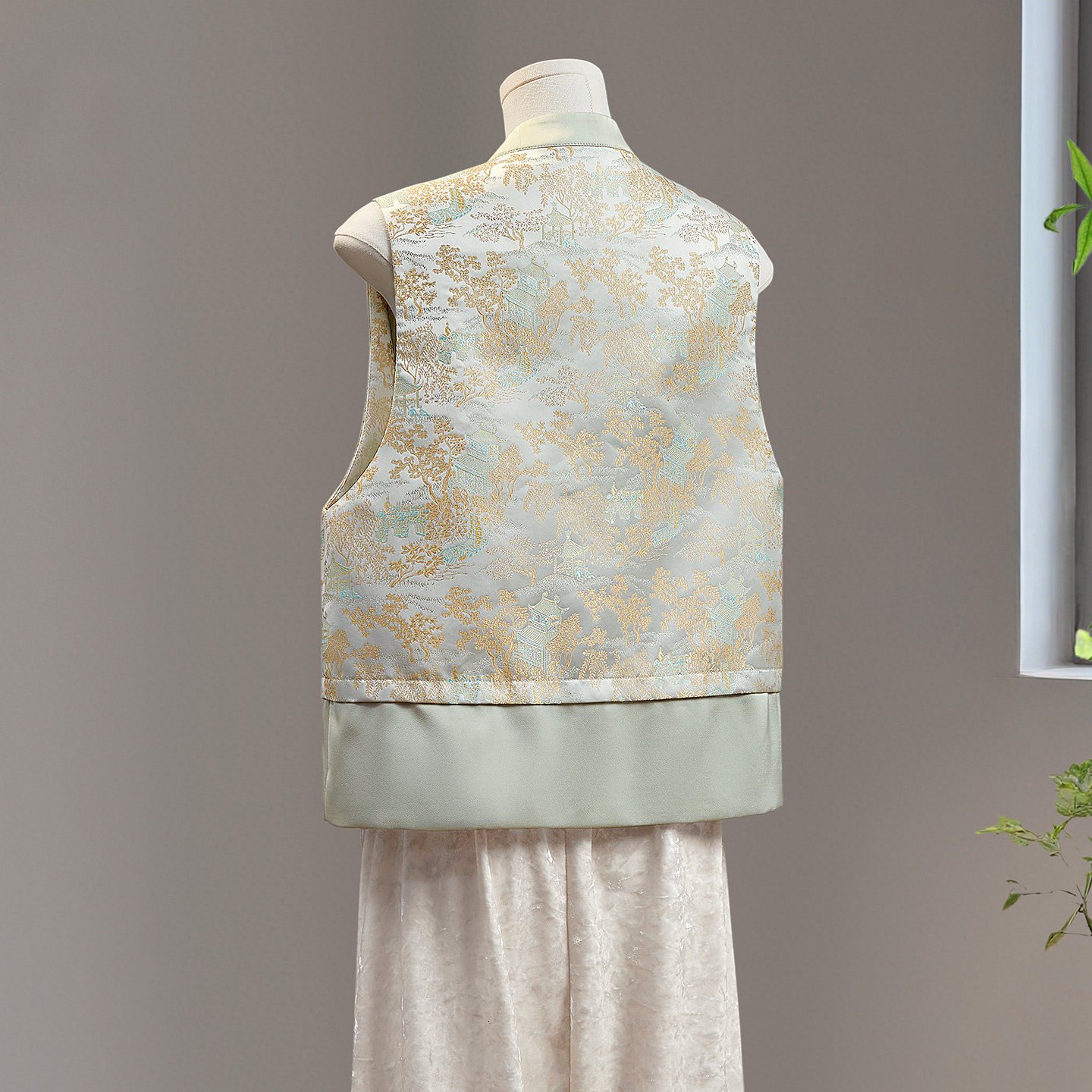 她池短款马甲2026春装新款女装新中式国风撞色立领宽松款叠穿马夹