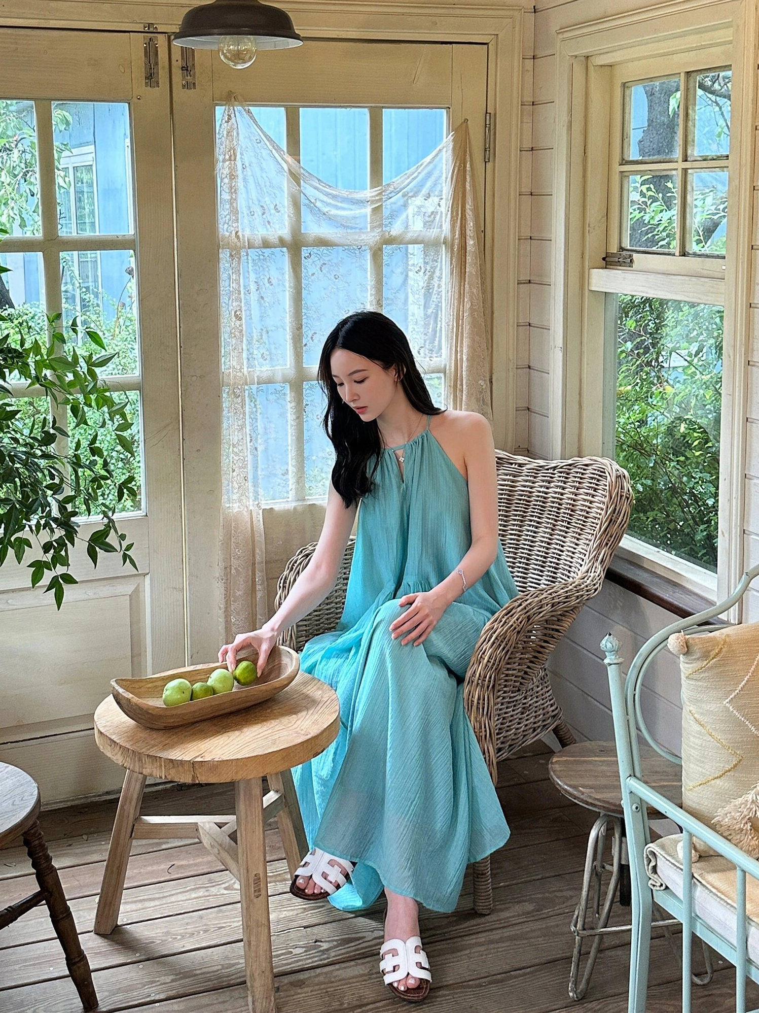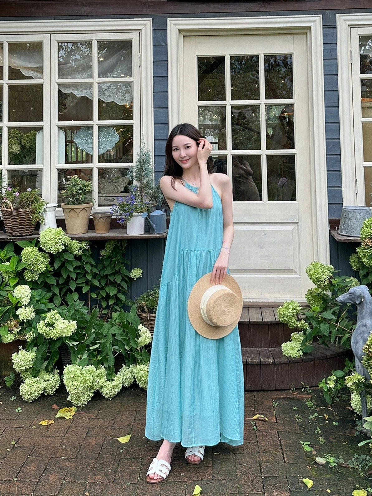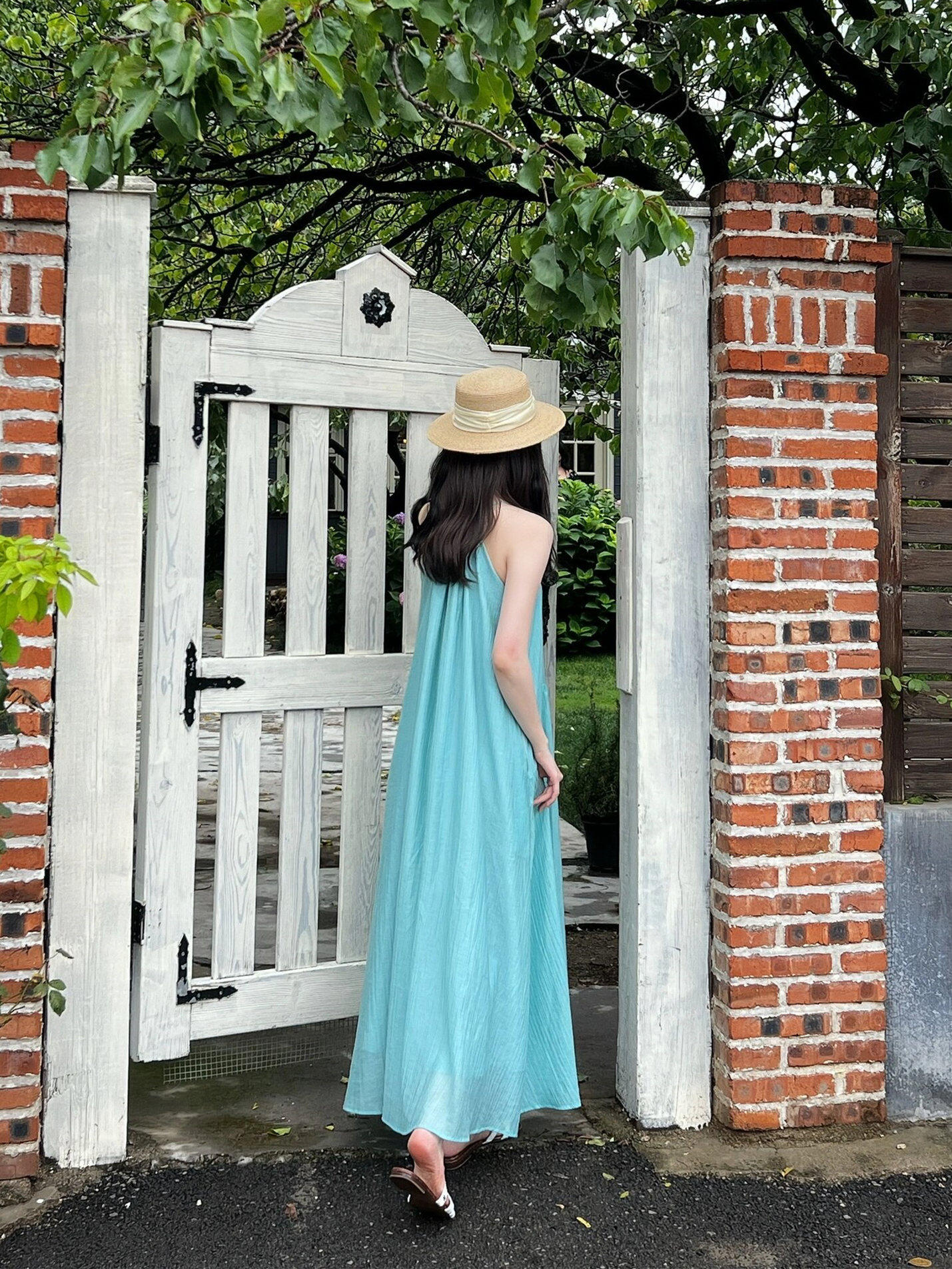 海边旅行拍照度假长裙超仙女夏季大码宽松遮肉挂脖无袖吊带连衣裙