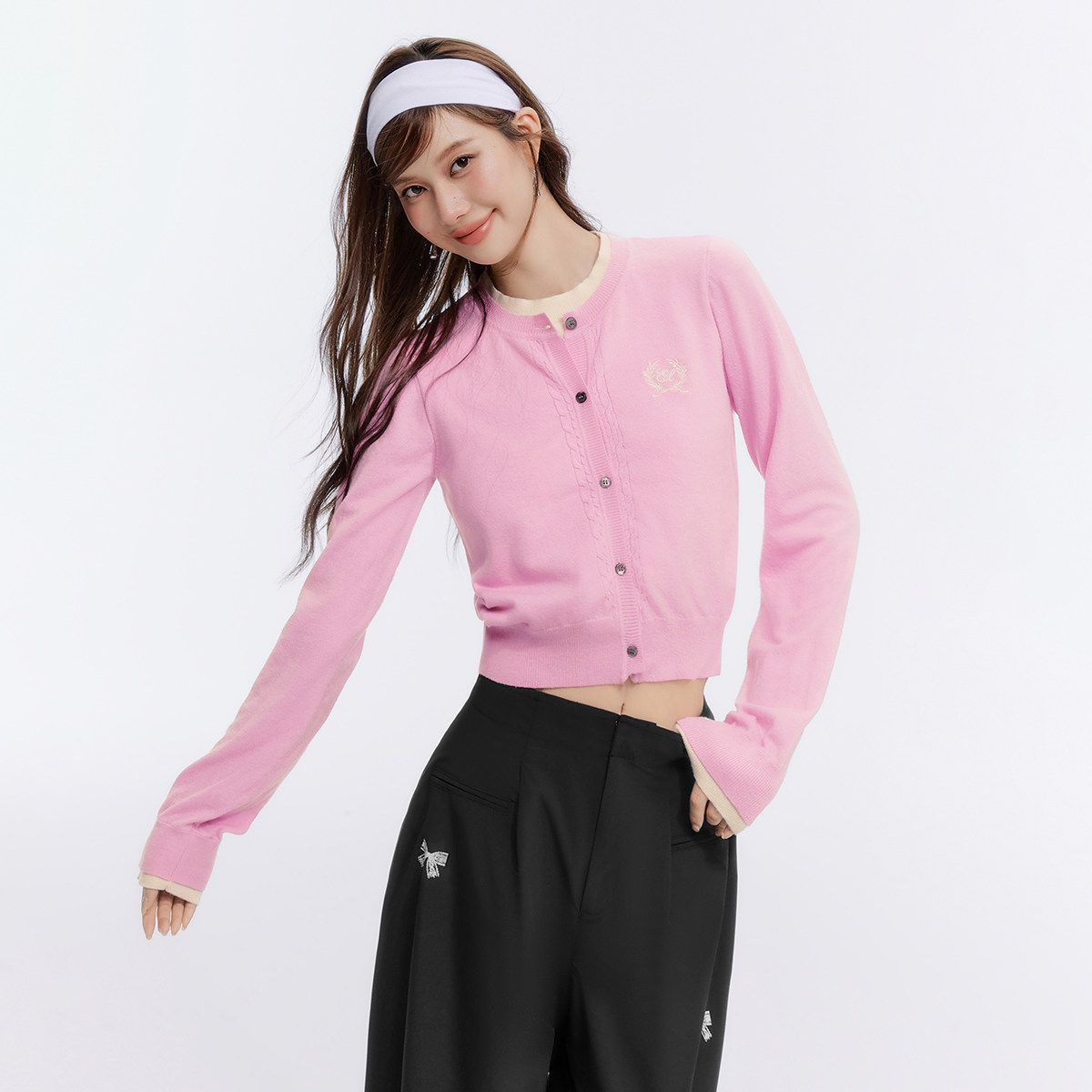 311线报网描述:美式复古风假两件 撞色绣花抗起球包芯纱