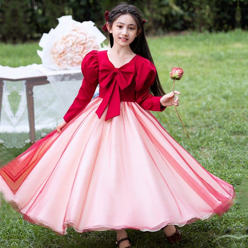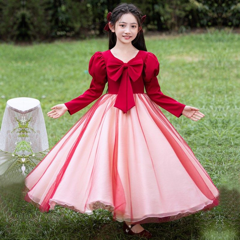 公主裙女童生日宴晚礼服2025新款红色轻奢小众高端儿童连衣裙高级