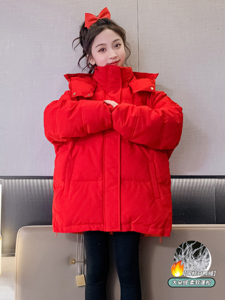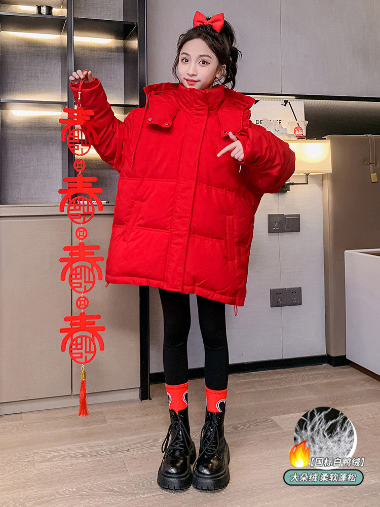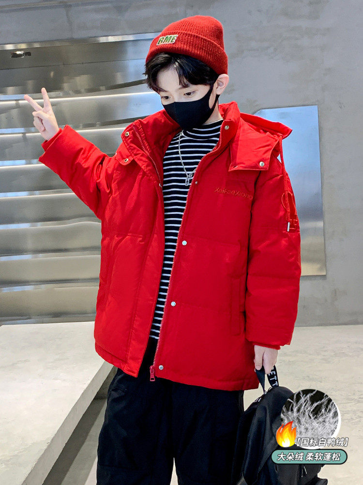 红色男童羽绒服本命年儿童装防水白鸭绒中大童加厚外套新年拜年服