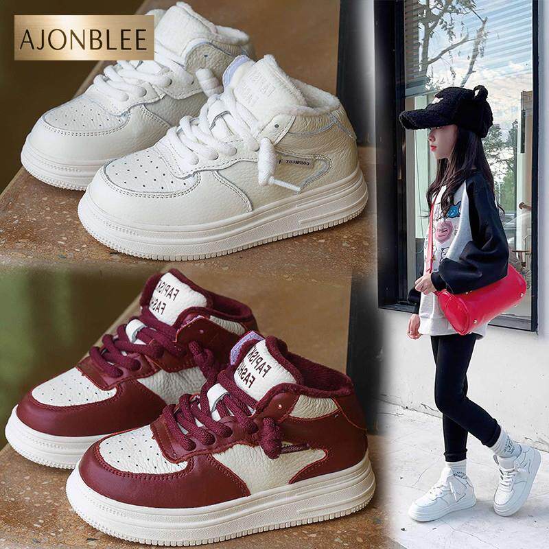 儿童头层牛皮运动鞋2024秋冬季新款加绒男童真皮板鞋女童二棉鞋子