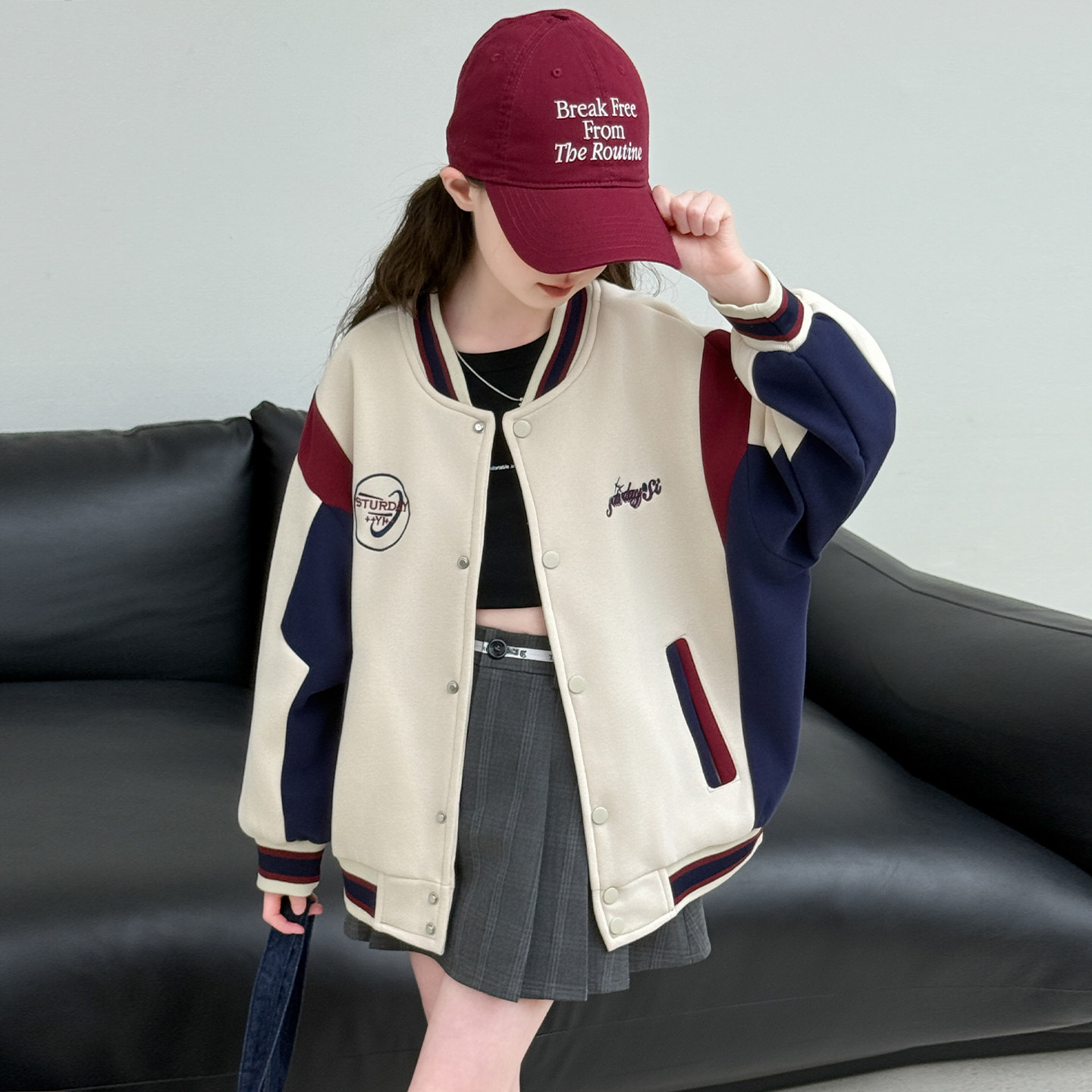 女童春装休闲外套2026新款洋气春秋拼色棒球服小女孩运动夹克上衣