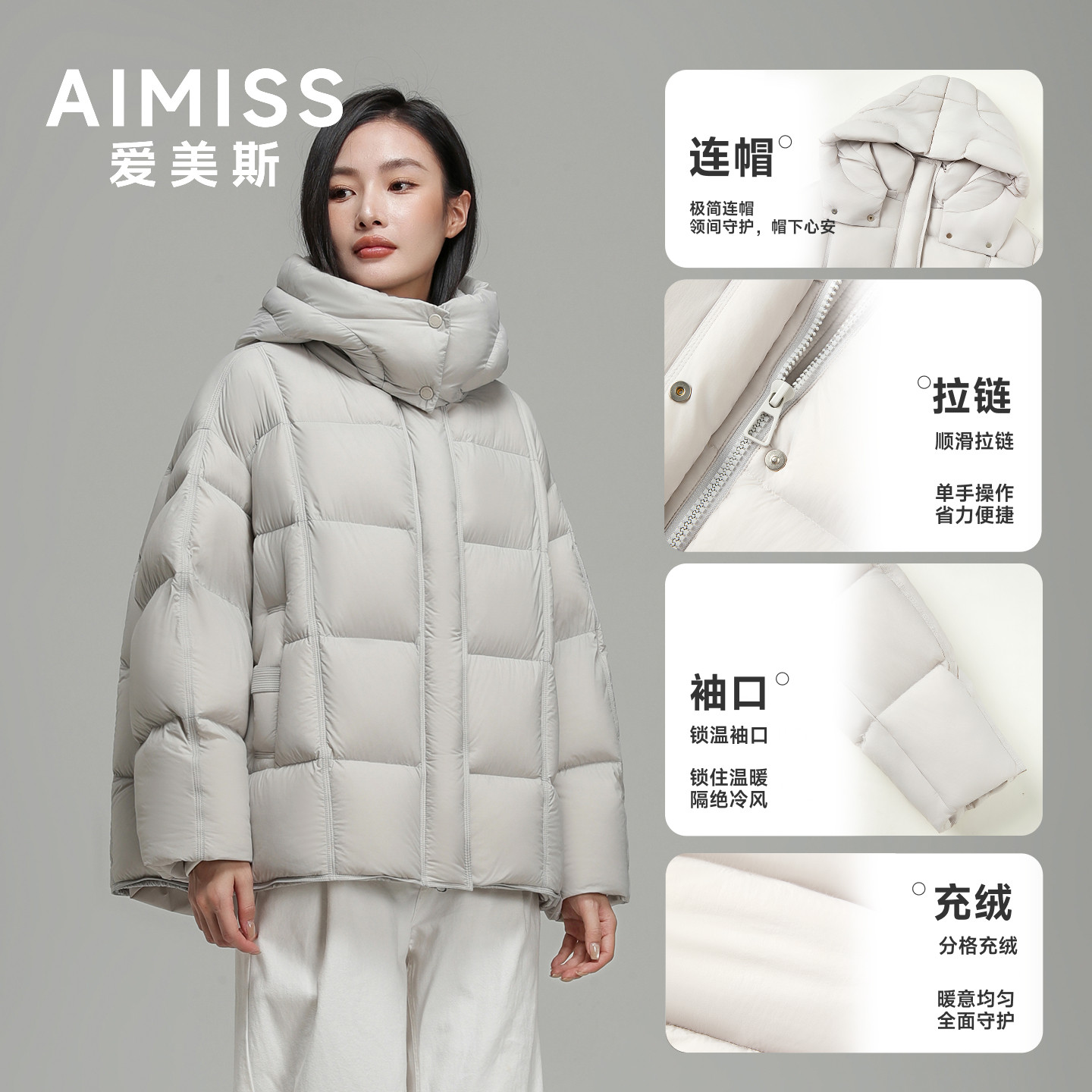 AIMISS爱美斯短款鹅绒羽绒服女款2026新款连帽巨好看的冬装羽绒服