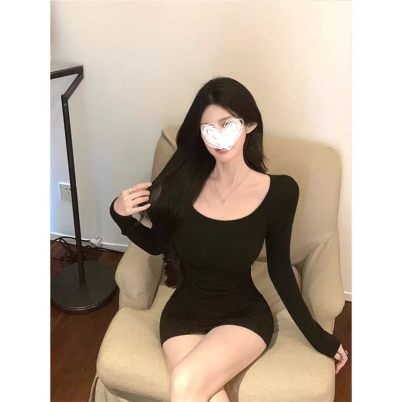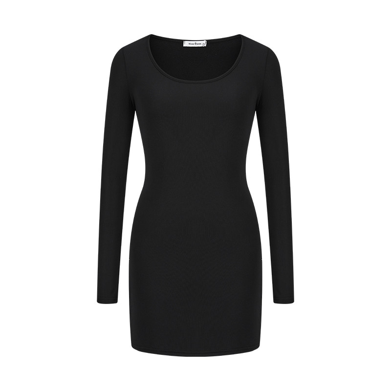 MosesQueen魔西女王加绒加厚黑色连衣裙秋冬季内搭显瘦包臀短裙子