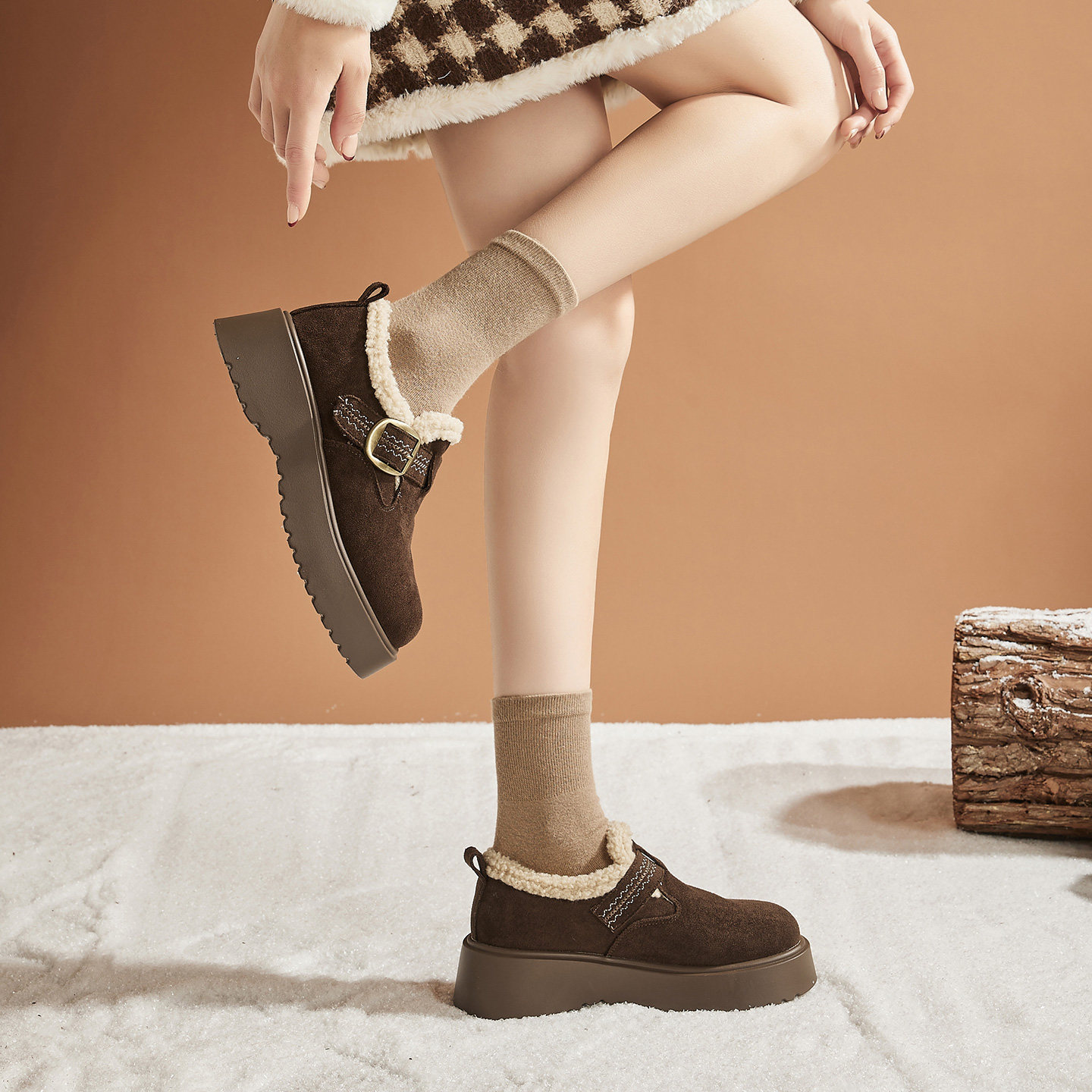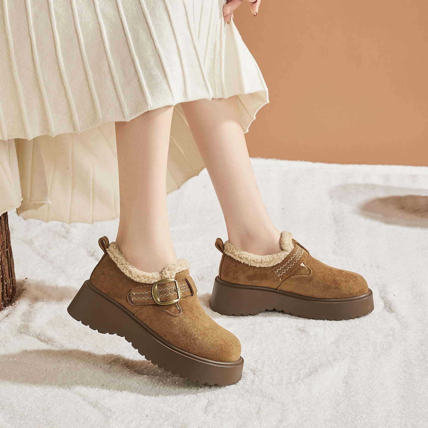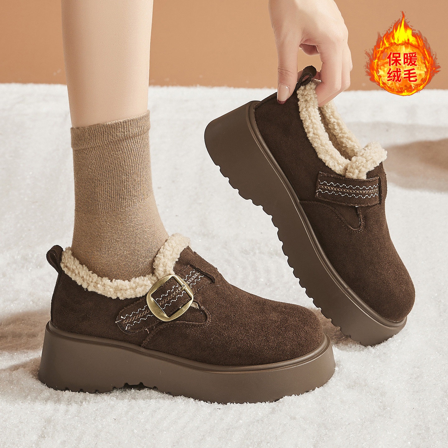 全包厚底增高5CM勃肯鞋2025冬季新款加绒保暖防滑魔术贴休闲棉鞋