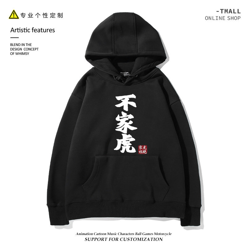 不厄介不家虎印花连帽卫衣男女青少年秋冬加绒宽松百搭休闲衣服潮