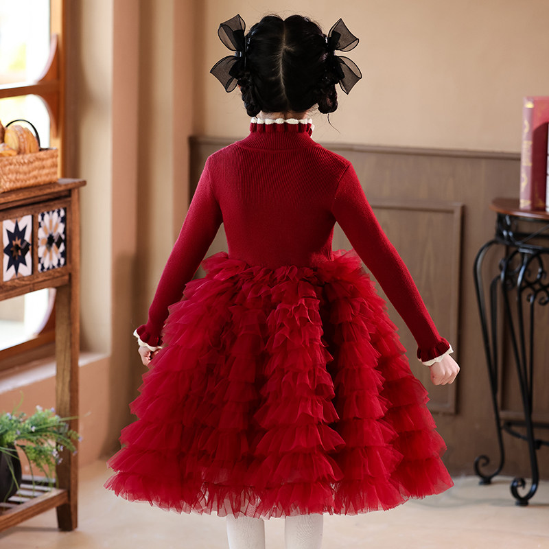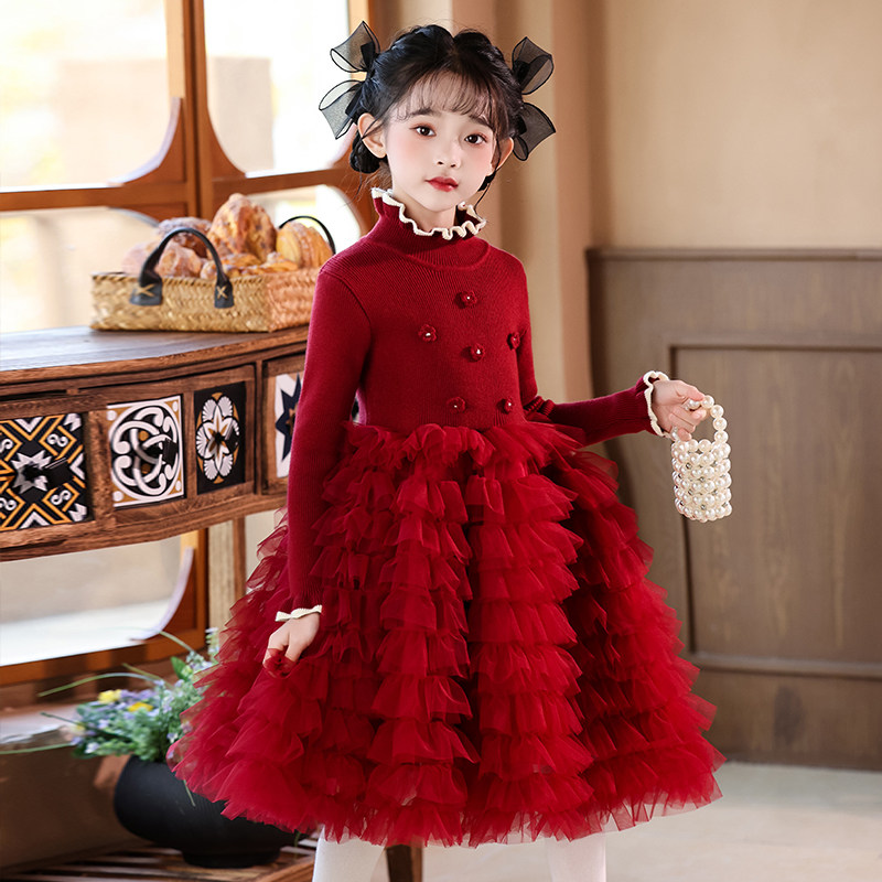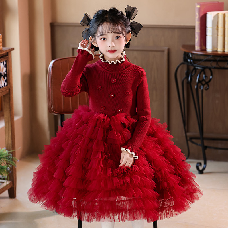 女童红色连衣裙冬装2026新款儿童公主裙冬季新年装女孩过年拜年服