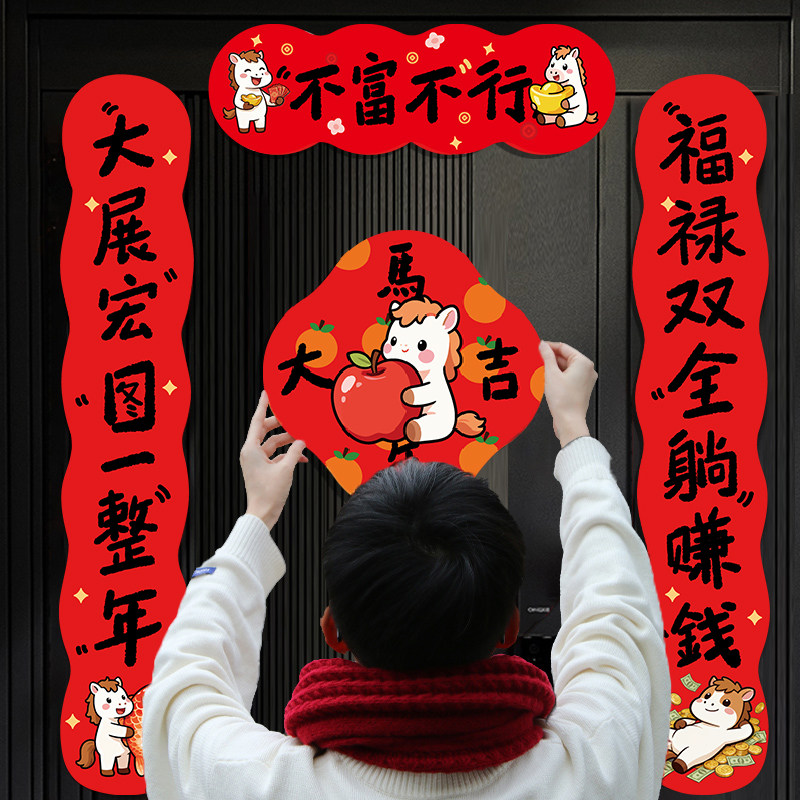 2026新款马年磁吸对联创意哈哈哈哈哈新年春联过年装饰春节大门贴