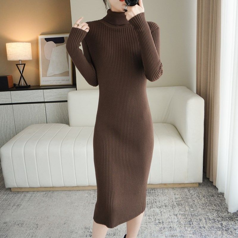 中长款高领套头毛衣裙女修身内搭羊毛过膝针织连衣裙打底衫配大衣
