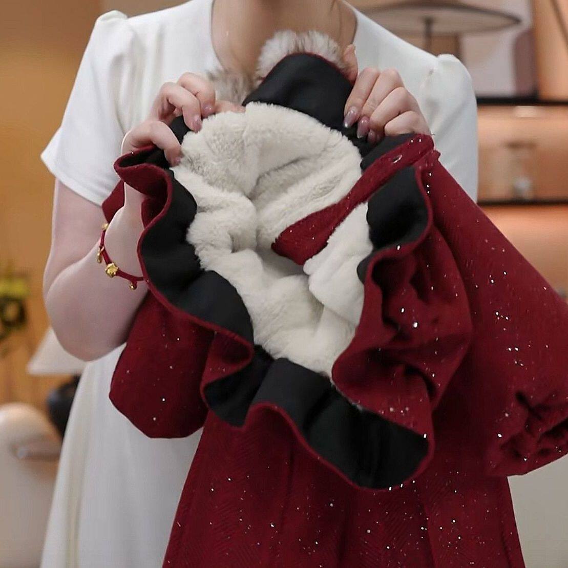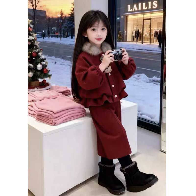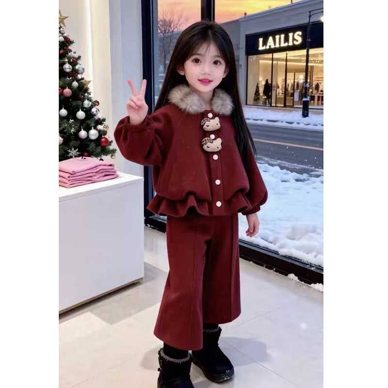 女童冬装套装2025新款加绒加厚洋气毛领两件套儿童衣服新年拜年服