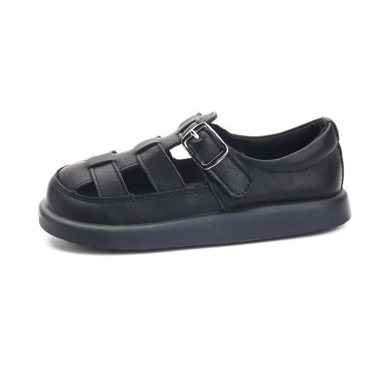 女童凉鞋包头镂空夏款皮鞋头层牛皮新款男童黑色夏季宝宝包脚鞋子