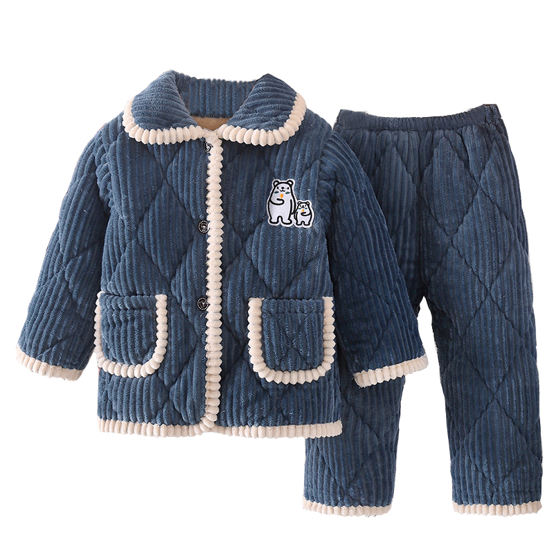 儿童法兰绒睡衣秋季冬天女童男童珊瑚绒加厚款套装宝宝夹棉家居服