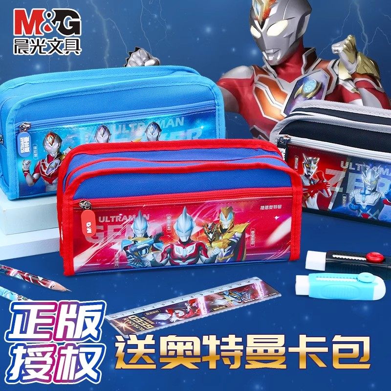 晨光奥特曼笔袋男小学生文具盒男孩款铅笔盒收纳盒男孩版帆布耐用男生男款男童儿童一年级幼儿园文具铅笔袋