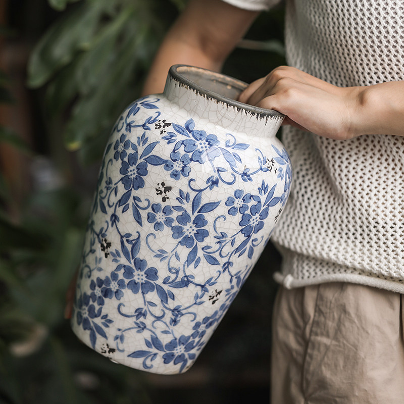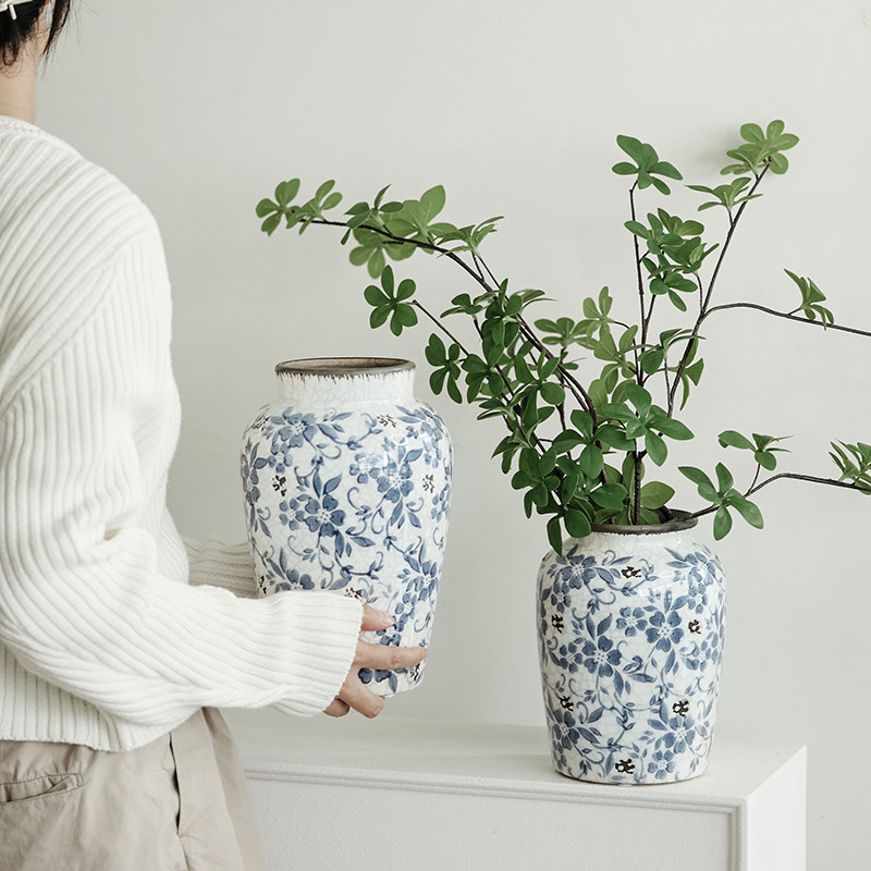青花复古陶瓷花瓶客厅插花高级感鲜花水培绿植干花假花创意摆件