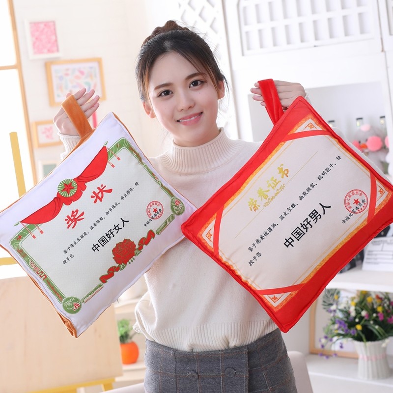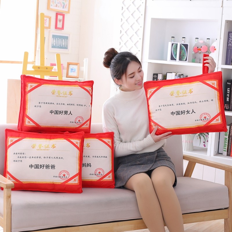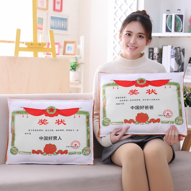 创意奖状抱枕送爸爸妈妈礼物毛绒靠垫枕午休枕父亲母亲节礼品定制