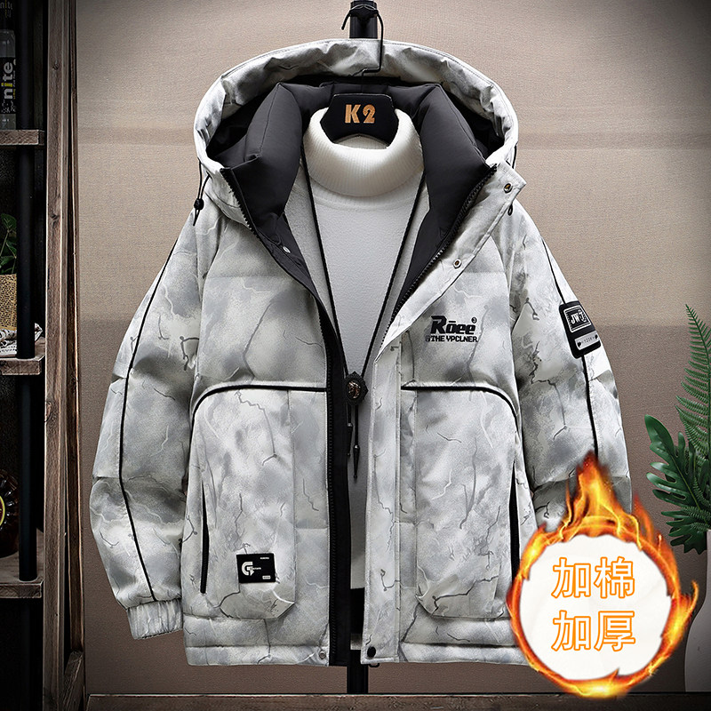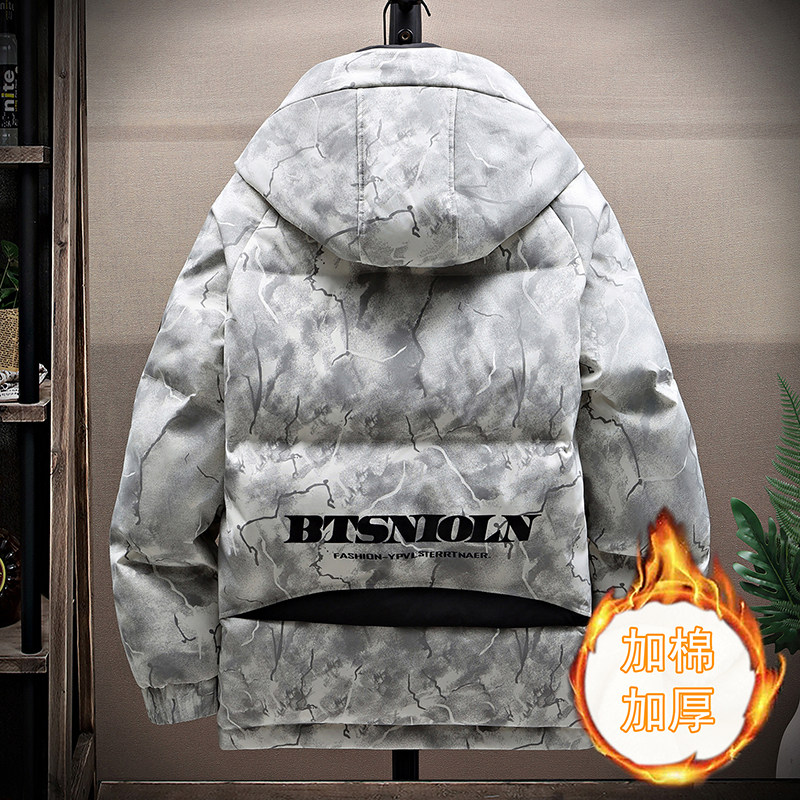 扎染连帽棉衣外套男冬季时尚潮流青少年学生羽绒棉服男孩加厚棉袄