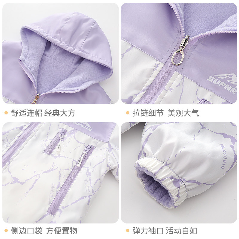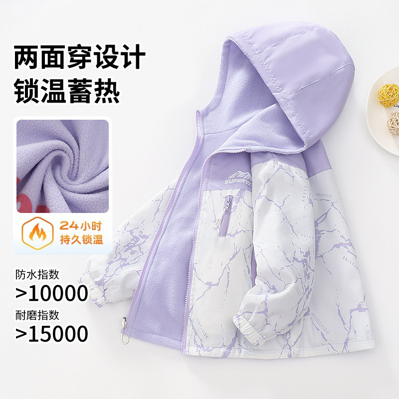 雅鹿女童春款外套2026新款加厚双面穿防水冲锋衣大童女孩保暖上衣