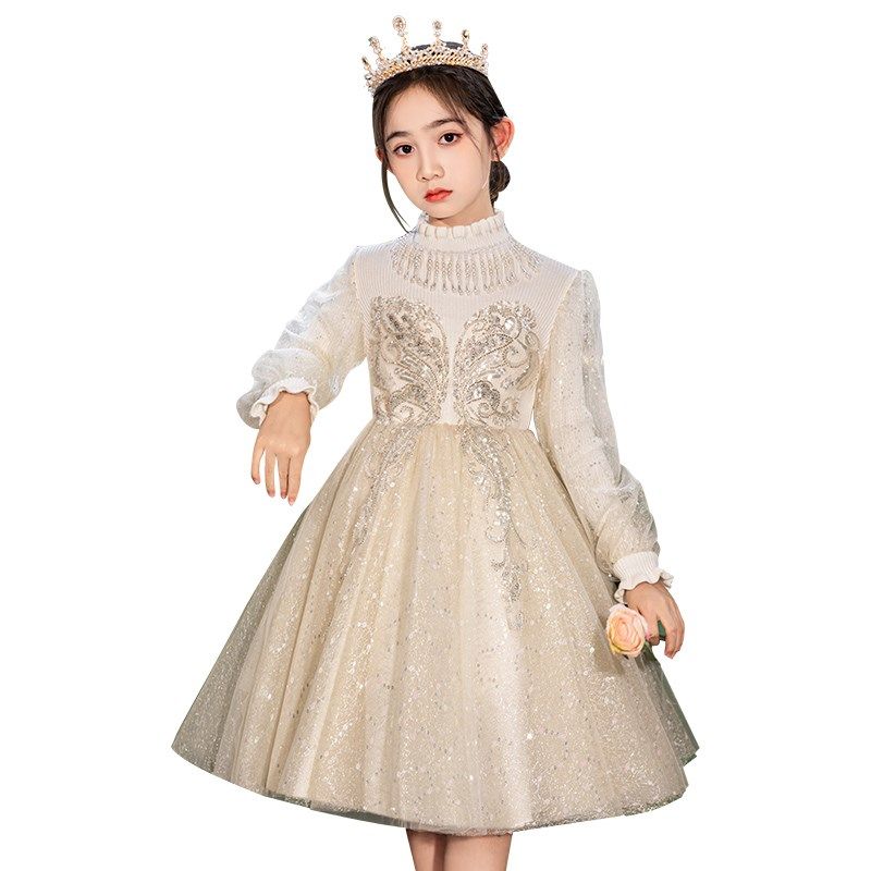 女童公主裙礼服轻奢小众高端2024新款儿童连衣裙花童婚礼秋冬裙子